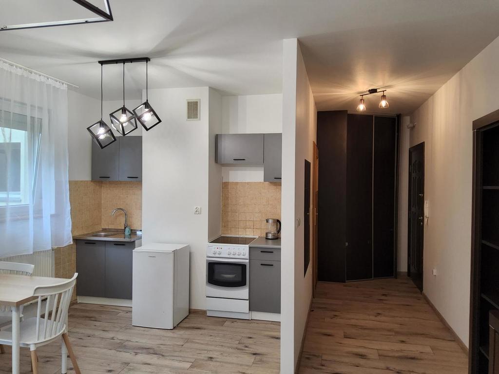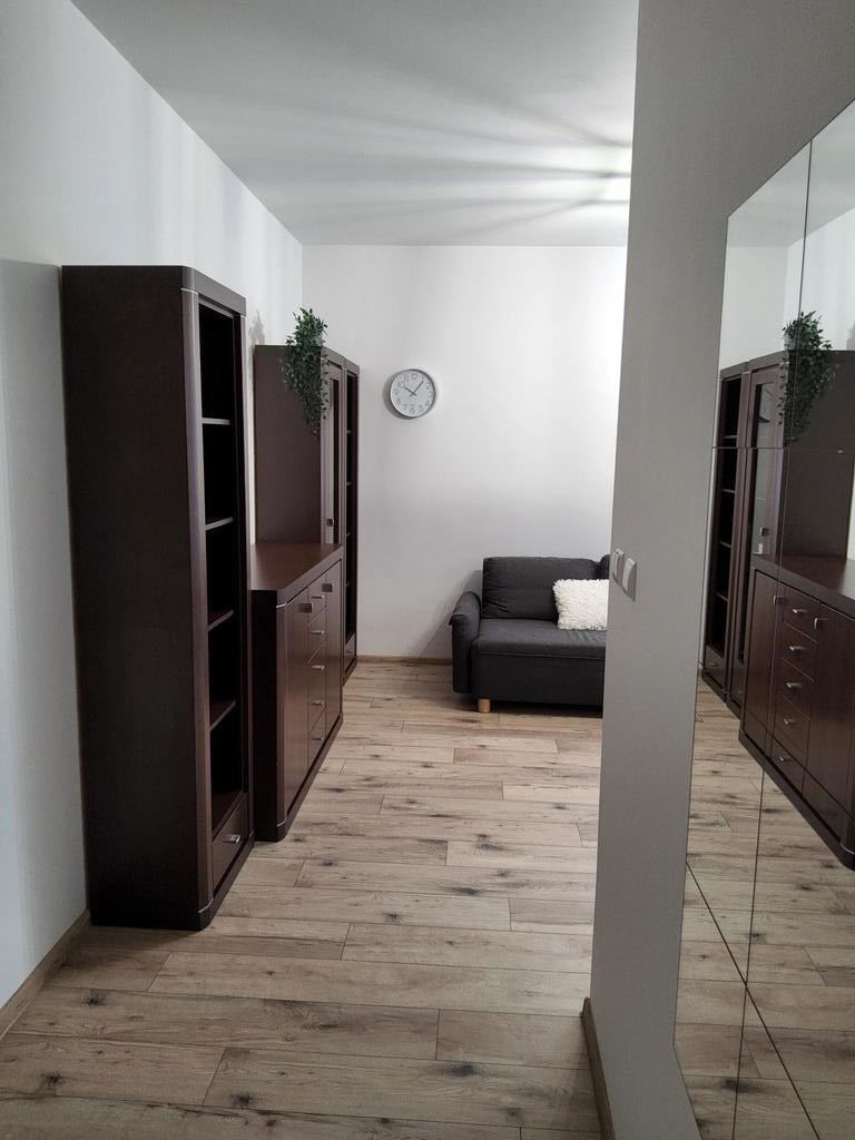 A studio apartment in the center of Szczecin for rent. It is located on the ground floor of the block from 2000. The area of approx. 32m2 consists of approx. 21m2 room with a kitchenette separated by a barge, and a large approx. 6m2 bathroom with toilet, PVC windows. Panels on the floor, painted walls, Heating and hot water from the municipal network. The flat is equipped with household appliances (washing machine, fridge, cooker with ceramic hob). In the hall, a commander type wardrobe. In addition, paid rent to the manager approx. PLN 290 plus electricity. A basement belongs to the apartment. It is possible to park the car in the yard closed by a remote control gate. Great access to the center, medical academy, ZUT. Near the tram terminus. Grocery stores. Deposit PLN 2000. I recommend because of the standard and location.