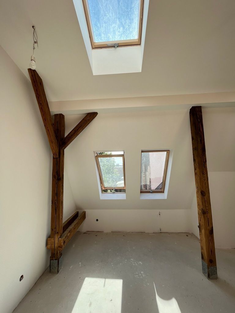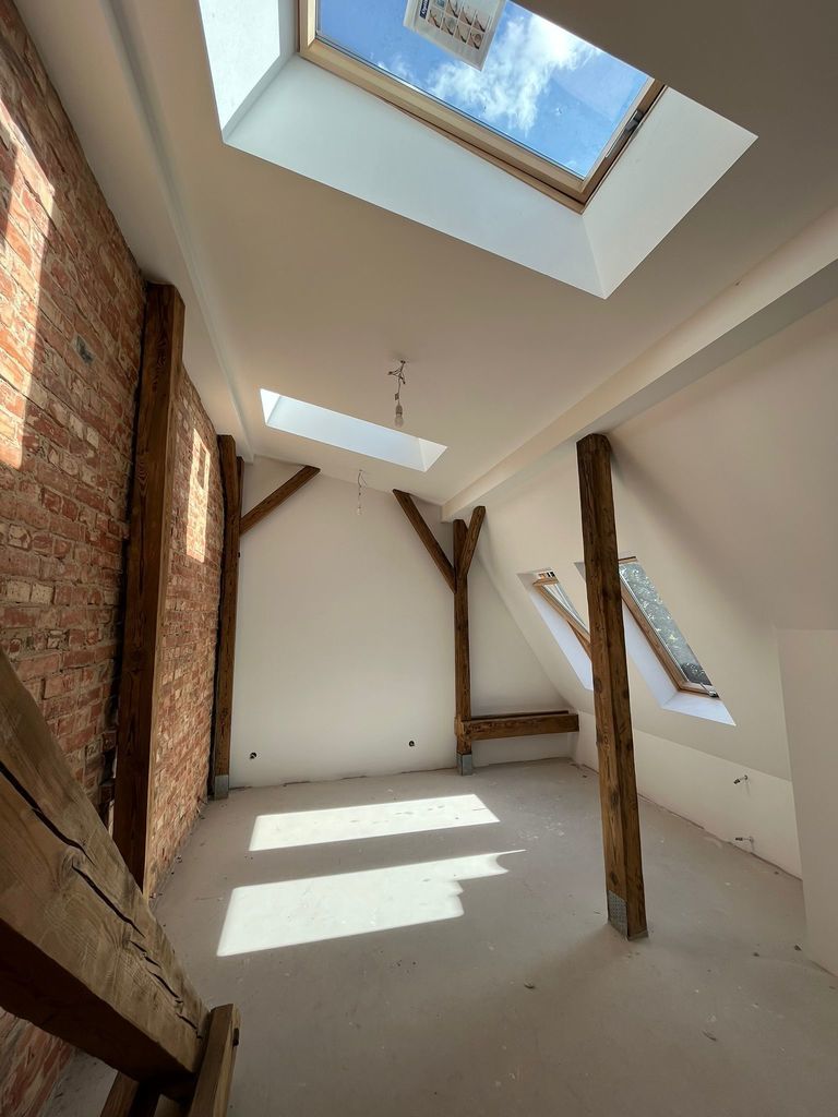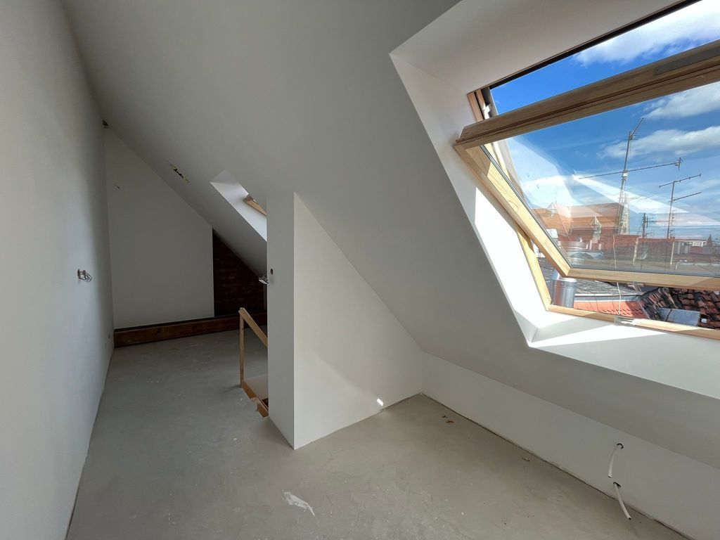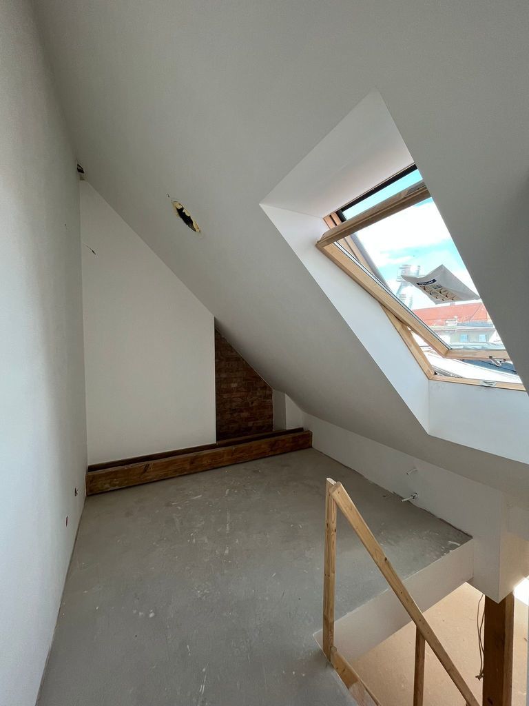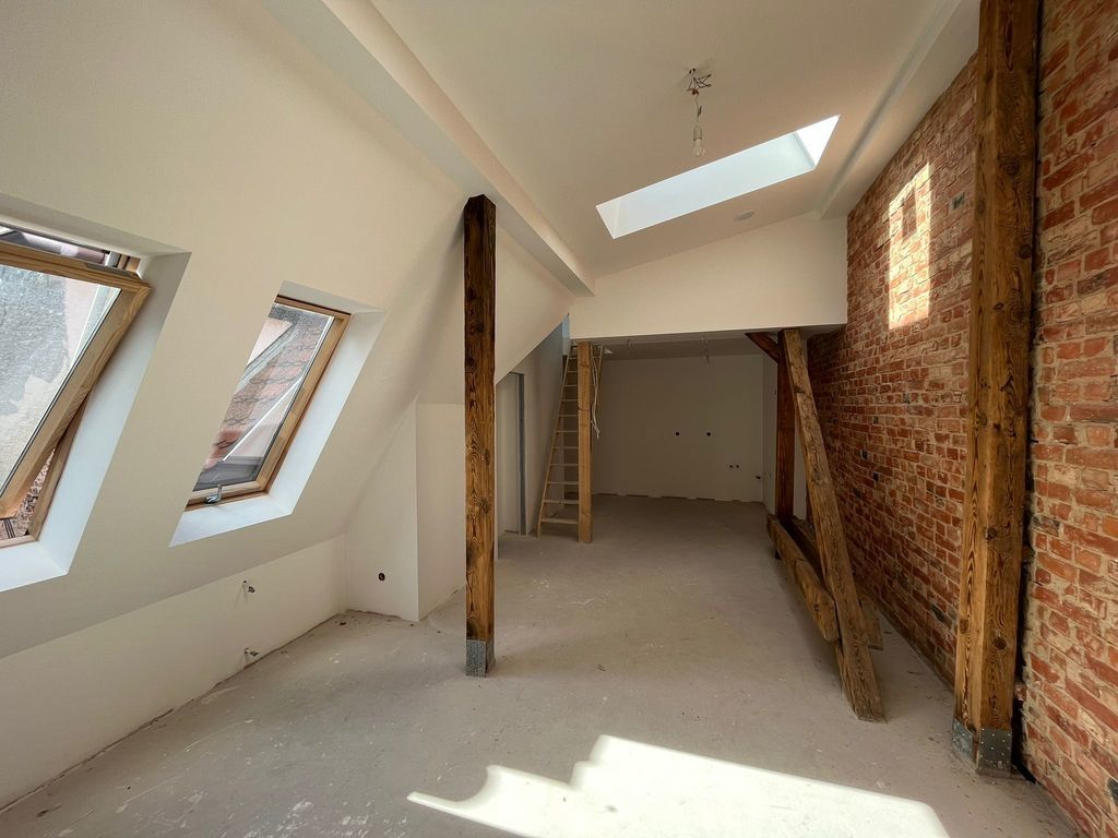 Downstairs there is a living room with a kitchenette and a bathroom.