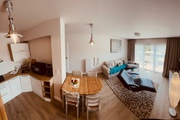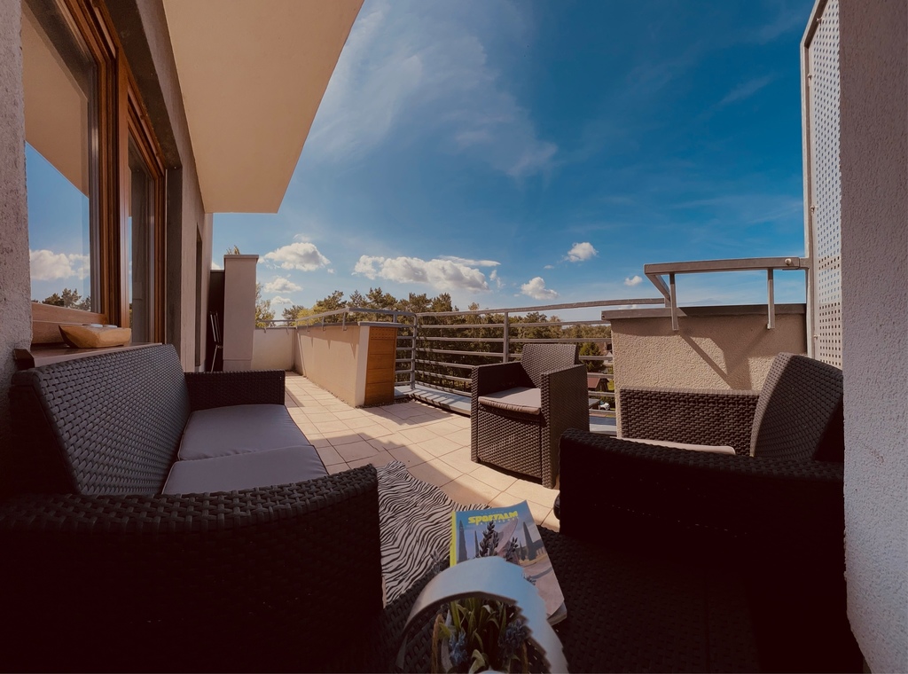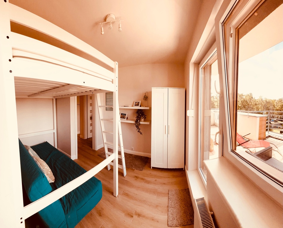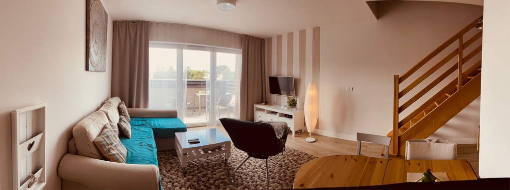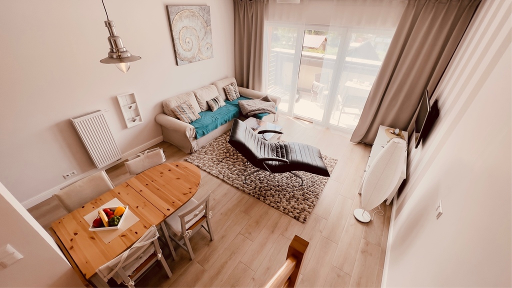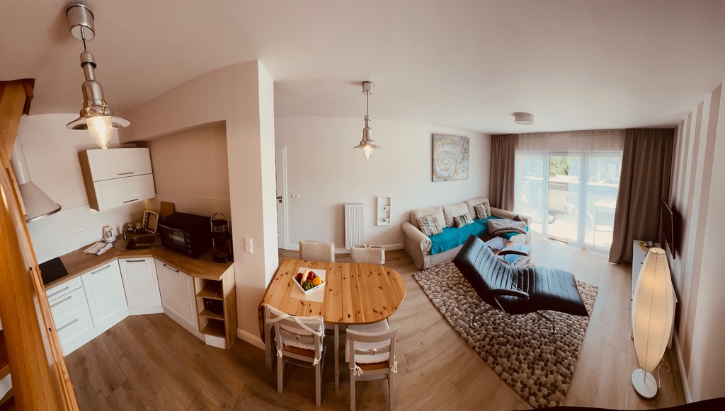 BUY, RENT, EARN! HOLIDAY APARTMENT WITH GARAGE SPACE I will sell a two-level apartment with a total area of 60.32 m2, fully equipped and furnished. This apartment is located on the second floor of the building, 200 meters from the sea. It consists of: Downstairs: a spacious living room with a modernly equipped kitchen, a bathroom with a shower and a 6-meter balcony. Upstairs: 2 bedrooms and a large 15-meter terrace. The apartment is finished and furnished. Additionally, there is a parking space in the underground parking lot. It is possible to rent the apartment to an operator (there is no obligation to do so) who offers comprehensive services in the management and rental of real estate, you can also use the apartment for your own needs or rent it yourself.