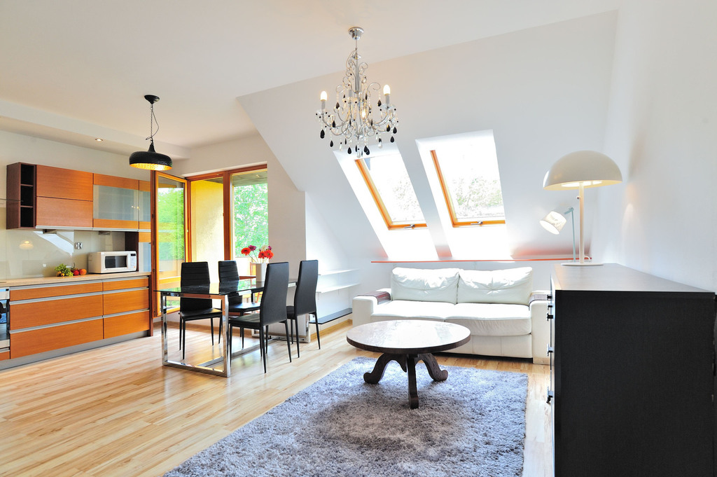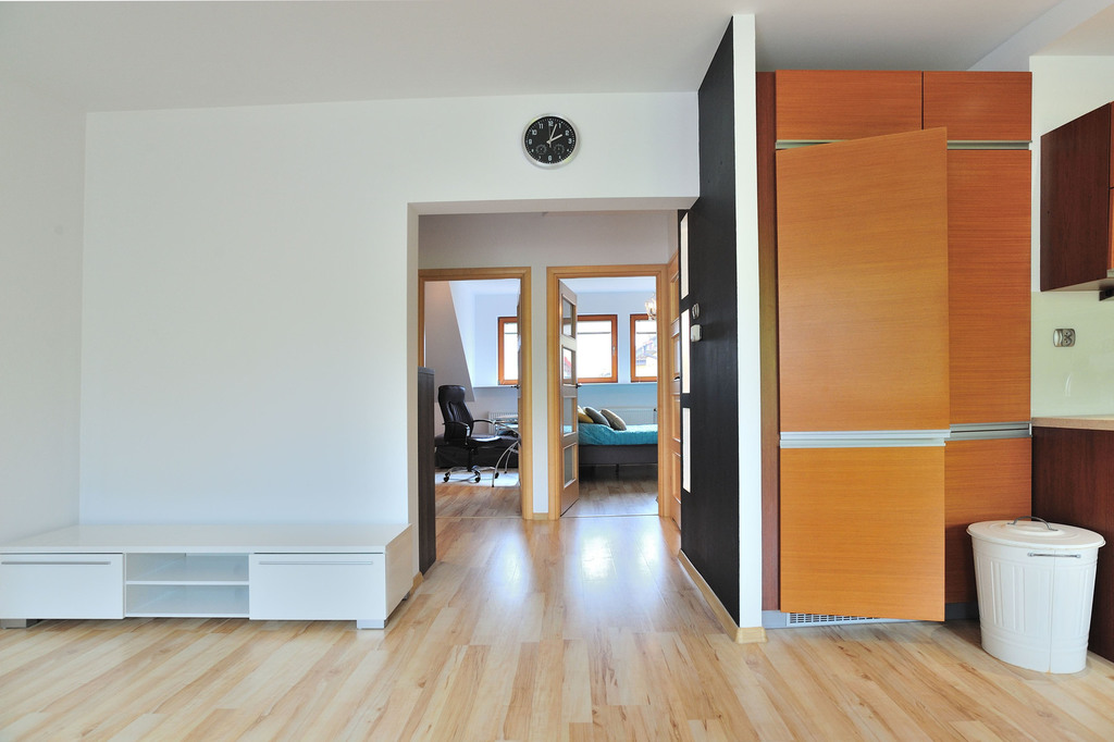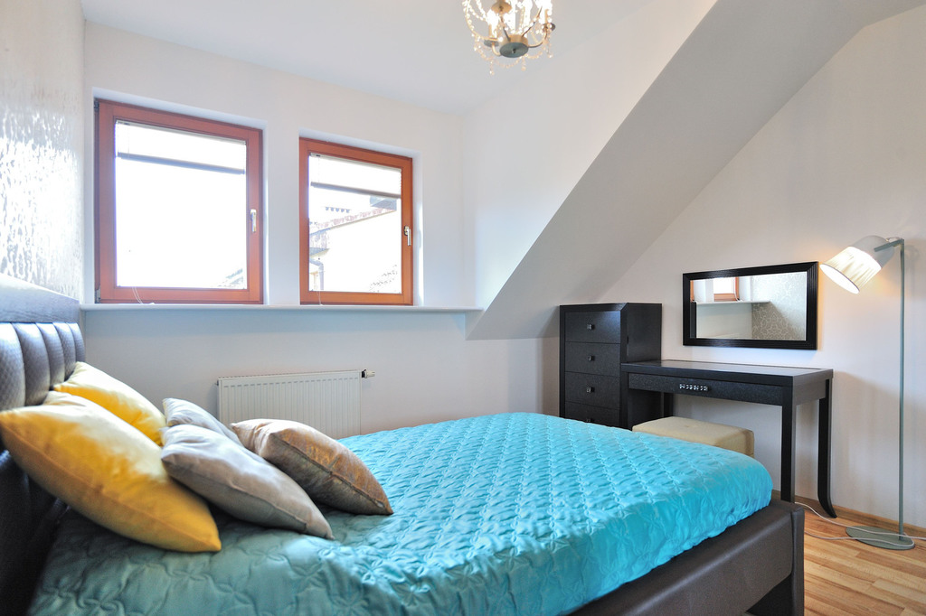NOTE – if we do not answer your phone, please contact the office at 91 311 11 27 or leave a text message. We will definitely contact you. Only here we present you the offer of renting a 3-room apartment located at ul. Henryk Rodakowski in the gated Pod Kasztanami housing estate. APARTMENT DESCRIPTION: An apartment for rent, located in the attic of a second-story building in the guarded Pod Kasztanami Housing Estate. Its total area is 56.68 m2, it is completely furnished and equipped. Heating and hot water from a gas furnace. The apartment has three rooms (including one with a kitchenette), a bathroom with a toilet and a hall. The bathroom is equipped with a bathtub, washbasin, toilet and washing machine. The living room with a kitchenette is furnished with a fold-out sofa, a table and two chests of drawers. The room also has a dining area with a table and four chairs. There is also access to the balcony from here. The kitchen is furnished with kitchen furniture and equipped with household appliances – an induction hob, an electric oven, a fridge with a freezer, a dishwasher, a microwave oven and an electric kettle. The bedroom has a large bed with a comfortable mattress, a large sliding wardrobe, a dressing table and a small shelf. The third room takes the form of an office and is equipped with a desk, an office chair, a large bookcase with shelves and a mini sofa. ENVIRONMENT: Near the presented apartment there are numerous green areas, including Park im. Romana Łyczywka, Botanical Garden or Kasprowicz Park. There are grocery stores, cafes and a gas station nearby. 800 m away there is the Independent Public Clinical Hospital No. 1 at ul. Union of Lublin. There are numerous public transport stops nearby – tram and bus lines (both day and night). All this means that the area has excellent transport connections with other parts of the city. COSTS: In addition to PLN 2,800 of rent, PLN 529.36 of administrative rent plus gas and electricity fees should be added. + garage rent PLN 200. / month I recommend it due to safety (quiet neighborhood, gated community) and large green areas for residents (playgrounds, separate areas for barbecuing and sports). You're welcome, the keys are in the office.