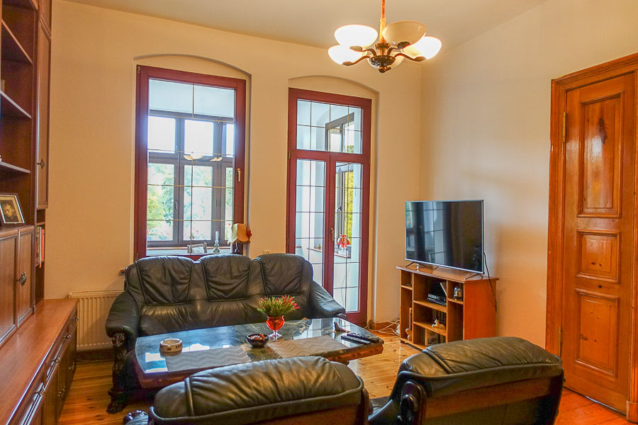 A unique 3-room apartment with a balcony for a connoisseur with a view of Kasprowicz Park at Jasne Błonia in a pre-war tenement house, at ul. Słowacki. Height: 3.3 m. Three spacious rooms with an area of 27 m2, 22 m2 and 22 m2 with original, restored wooden floor. 2 rooms on the south side with a view of the park, one of them has an entrance to the built-in balcony, a perfect place for morning coffee, one room on the north side, facing the outbuilding. There is a fireplace in one room. Separate kitchen 11 m2 with space for a table. The kitchen has furniture, a gas stove with an oven, a sink, and a refrigerator. Bathroom with two windows, 10 m2, terracotta floors, tiles on the walls, shower cabin, washbasin, toilet together, space for a washing machine. Hallway 8.5 m2 with wainscoting. Possibility to install a bathtub. Original doors in the apartment, both external and internal. Wooden, composite windows of high quality. PVC windows on the balcony. Nearby there are walking routes to Osowo, bicycle routes and a bus line. There is strength in the apartment. Gas heating, low rent approx. PLN 360 with Renovation Fund. Smooth, painted walls. I recommend it due to its great location and functional layout. The 3-Zimmer-Wohnung in the Balcony in the Genießer in the Balcony in the Kasprowicz-Park in the Mietshaus in the Vorkriegszeit. Höhe 3.3 m 3 Zimmer mit einer Fläche von 27 m2, 22 m2 und 22 m2, auf dem Boden eine originale, restaurierte Tafel. 2 Zimmer auf der Südseite mit Blick auf den Park, eines davon mit Zugang zu einem bebauten Balkon, idealer Ort für den Morgenkaffee, ein Zimmer auf der Nordseite, vom Nebengebäude. In einem Raum befindet sich ein Kamin. Separate Küche 11 m2 with Platz für einen Tisch. In der Küche Einbaumöbel, Gasherd mit Backofen, Spüle und Kühlschrank. Badezimmer mit zwei Fenstern von 10 m2, Terrakottaböden, Fliesen an den Wänden, Duschkabine, Waschbecken, Toilette zusammen, Platz für eine Waschmaschine. Halle 8.5 m2 in Verkleidung. Die Möglichkeit, eine Badewanne zu installieren. Die ursprüngliche Tür in der Wohnung, sowohl außen als auch innen. Hochwertige Holzfenster. PVC-Fenster auf dem Balcony. In der Nähe gibt es Wanderwege nach Osowo, Fahrradrouten, eine Buslinie. In der Wohnung ist Kraft. Gasheizung, niedrige Miete von ca. PLN 360 including Reparaturfonds. Glatte, gestrichene Wände. Ich empfehle es aufgrund seiner großartigen Lage und funktionalen Aufteilung