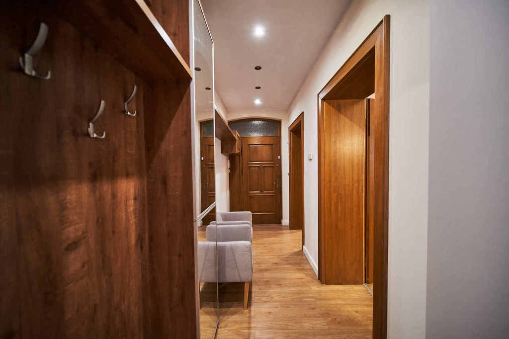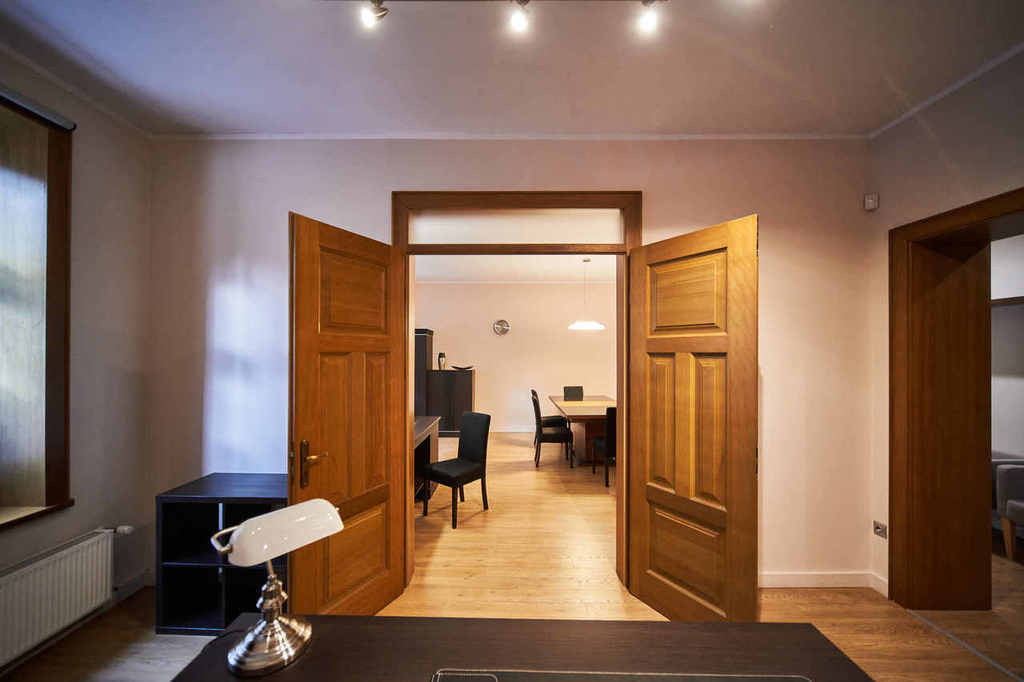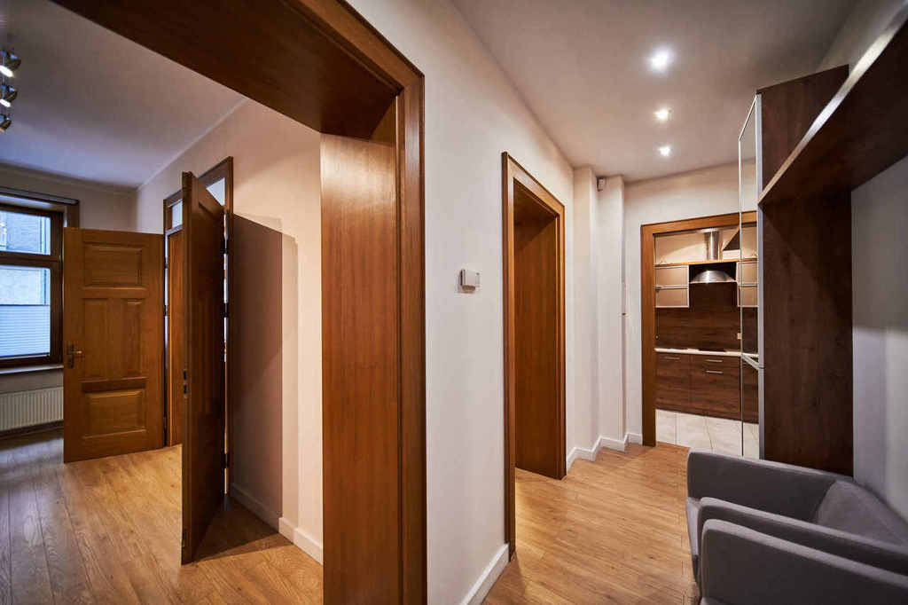 The premises are located in a renovated tenement house on the ground floor. The area is 56.59 m2, which is divided into: