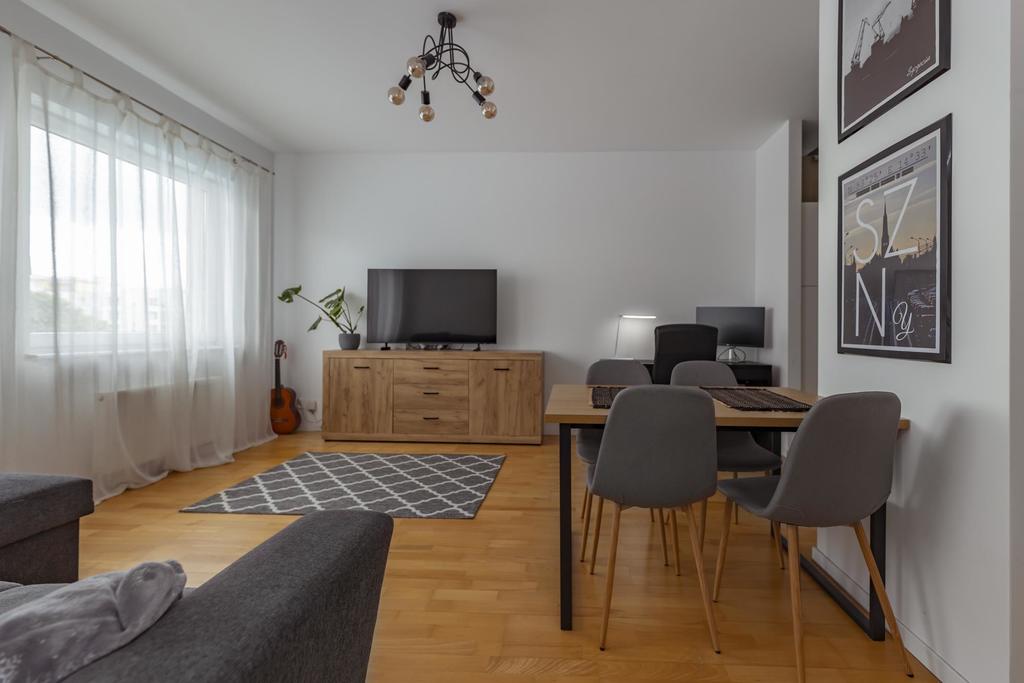 I offer you compact, two-room apartments at ul. Lubelska in Szczecin’s Gumieńce district. The building was built in 2009 with a silent elevator and an underground garage. Nice, spacious staircase. The surroundings of the building are the second line of buildings from the main Ku Słońcu street, with low-rise buildings, various service and commercial outlets (e.g. medical, cosmetics, food discount stores, etc.). Easy access to public transport, both buses (98, 88, 60) and trams (8, 10). In the vicinity there is also a DIY hypermarket and the Ster hall shopping mall. The apartment itself is located on the 3rd floor of a low building and consists of a bright living room, a partially open kitchen, a bedroom and a bathroom with a bathtub and a toilet. The tenant also has a parking space in the underground garage. The apartment is fully furnished, ready to move in. The kitchen and bathroom are equipped with all necessary appliances and accessories. The rent is PLN 2,400/month, the administrative rent for the community is PLN 375/month (2 people). In addition, heating from SEC, electricity, water according to consumption. I cordially invite you to the presentation, keys in the office.
