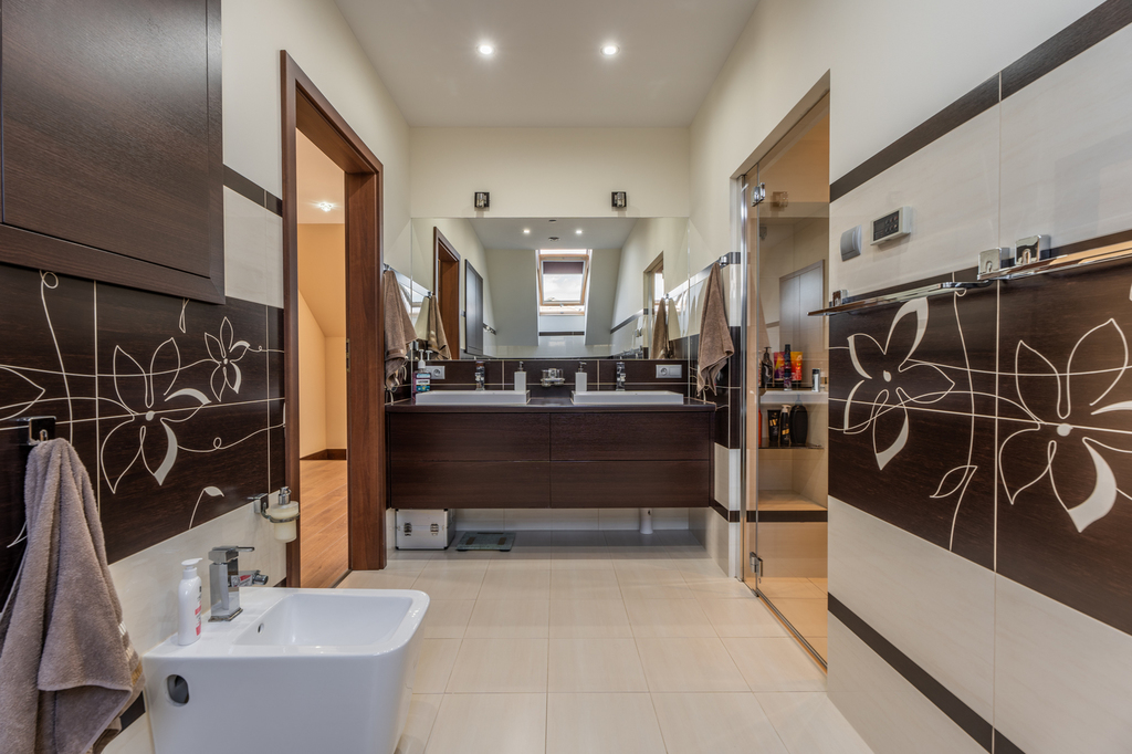 – large bathroom with sauna, shower, bathtub, toilet, bidet (14.5 m2 / 18 m2),