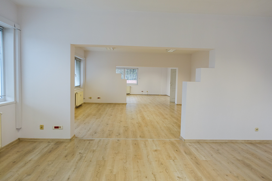 Office space available immediately, without furniture, painted white. Located in a new building, consisting of four office rooms, 3 rooms with an area of 33.2 m2. Rent PLN 2,500, additional electricity, heating, internet available. Three-month deposit required. From the staircase there is an entrance to the room, and from it to the next two rooms in an enfilade, and from the staircase there is an entrance to the bathroom of 8 m2 with two toilets. There are terracotta floors in the bathroom, hall and corridor, new panels in the rooms. 3 air conditioners, one in each room. PVC windows with sun blinds. Hassle-free parking on the fenced property. Favorable location close to the expressway to Stargard Szczeciński. There is a large maneuvering area on the premises. The building looks good. The furnished room in the photo shows the potential of the premises and exemplary furniture.
