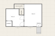The area of 55 m2 consists of two main rooms and two facilities plus a bathroom with a toilet.