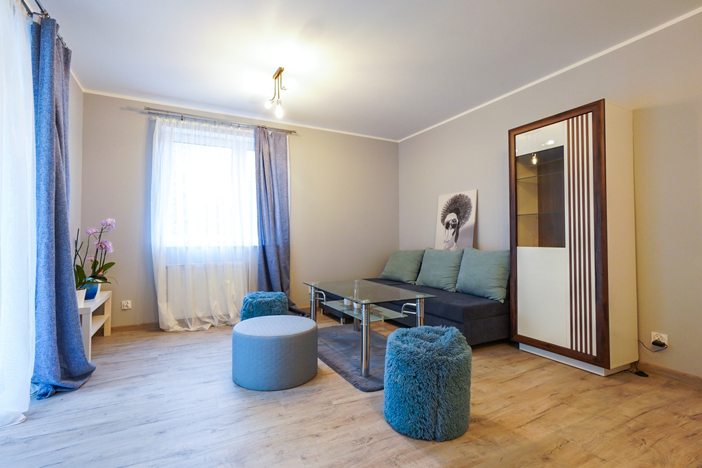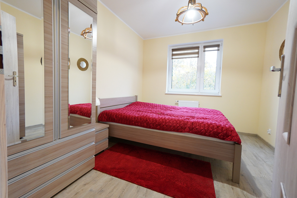 The rooms are furnished as in the photos. From the larger room there is an exit to the balcony facing the yard – this makes the apartment quiet.