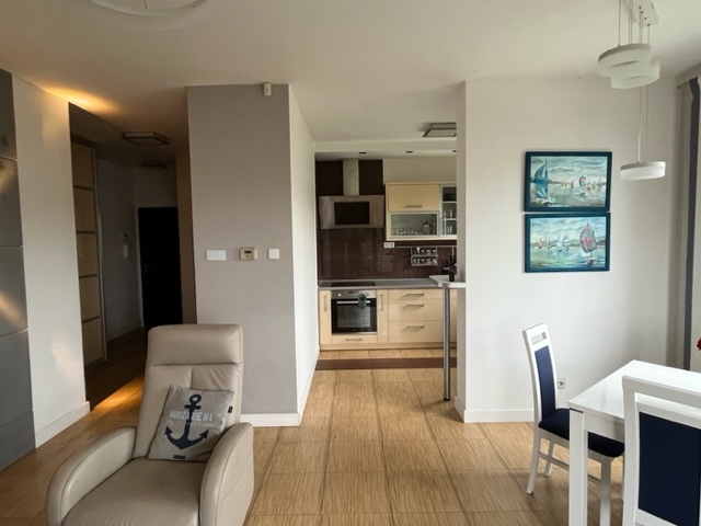 Exclusive offer! We present an apartment located in a building with an elevator from 2010, close to greenery and a new housing estate. The area is fenced. The apartment is sunny and overlooks the greenery. The living room has access to a spacious balcony. The bright kitchen is fully equipped with household appliances. A bedroom with a large bed and a wardrobe. Bathroom with bathtub and washing machine. Hallway with two built-in wardrobes. District heating, district heating. The advance payment to the Community amounts to PLN 309.00 + water + heating + electricity. Fixed furniture and household appliances are included in the price. Release on a date to be agreed