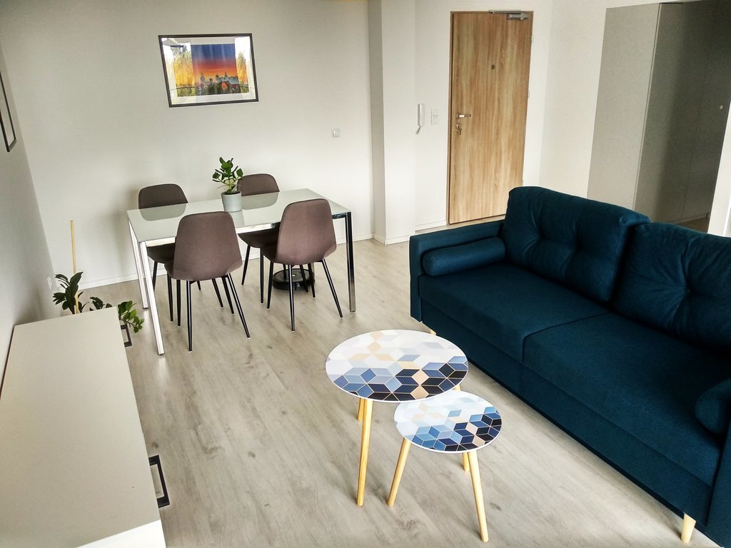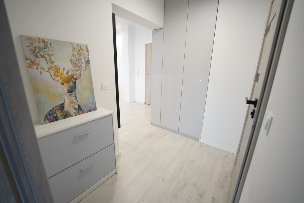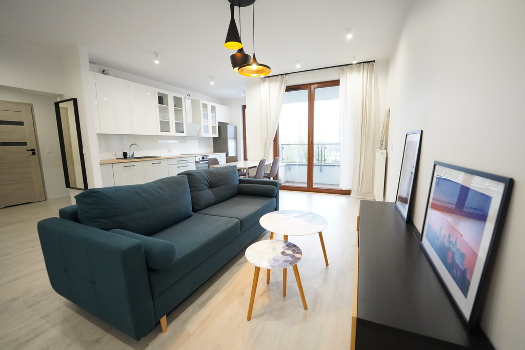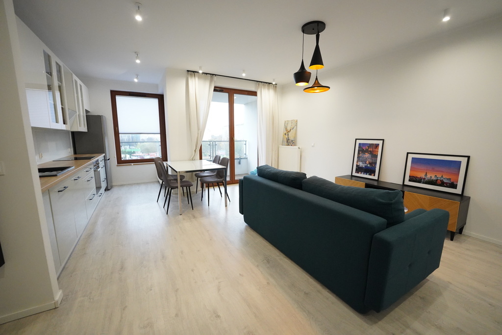 FOR RENT, a sunny 2-room apartment to a high standard, fully equipped, 50 m2, available immediately! Located on the 5th floor in a modern building from 2019 with an elevator, very close to the center. (Niebuszewo-Bolinko) The apartment consists of a hall, living room with kitchenette and balcony, bedroom and bathroom. The kitchen is equipped with new household appliances (fridge, oven, dishwasher, hood, induction hob). It is possible to add the bed shown in one of the photos to the bedroom. The apartment has heating and hot water from the city network. Rent to the manager approx. PLN 680 (includes advance payments for heating, hot and cold water, garbage), additional electricity according to consumption. Deposit required: PLN 4,000, occasional lease for at least one year. I INVITE YOU TO PRESENTATIONS