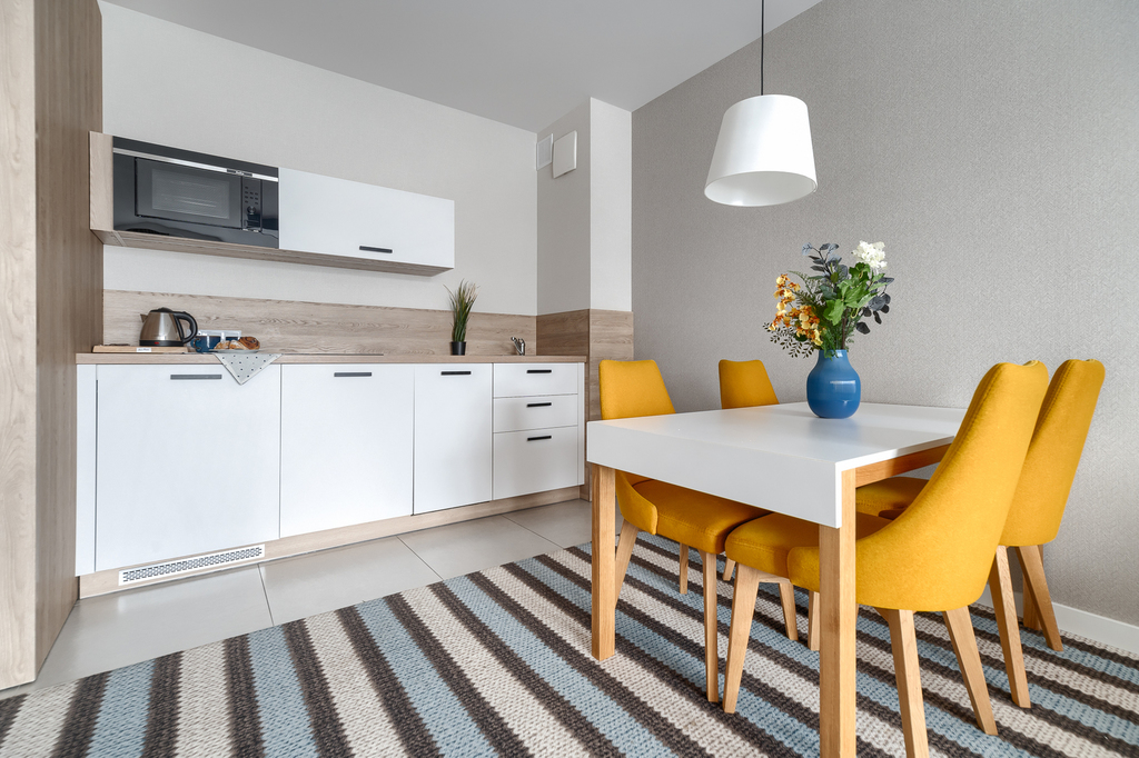 – kitchenette ꞉ fridge, dishwasher, induction hob, microwave, tableware and kitchenware,