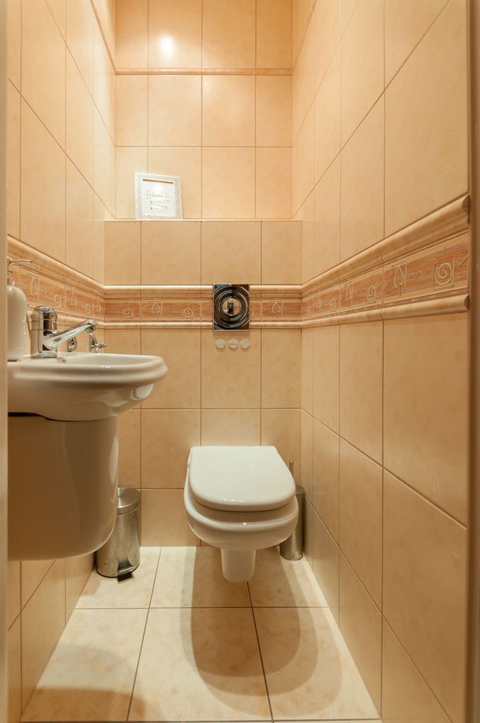 Separate toilet, also in tiles. In the hall there is a large Commander type wardrobe.