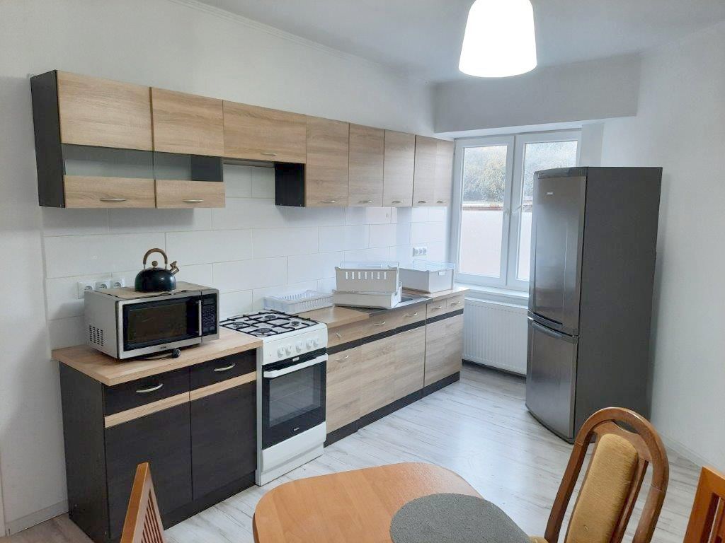 We offer for sale a spacious 2-room apartment located on the first floor of a brick building. The apartment consists of two large rooms, a kitchen with a dining room, a hall and a spacious bathroom with a toilet. The apartment is renovated. The plumbing and electrical installations have been replaced. The apartment has a new gas installation. From one room exit to the balcony. The walls are smoothed and painted, the floor is covered with panels and partly terracotta. The apartment includes a large cellar of the area. 26.2 m2. Near the school, shops, bus stops, medical clinic, post office. I invite you to the presentation.