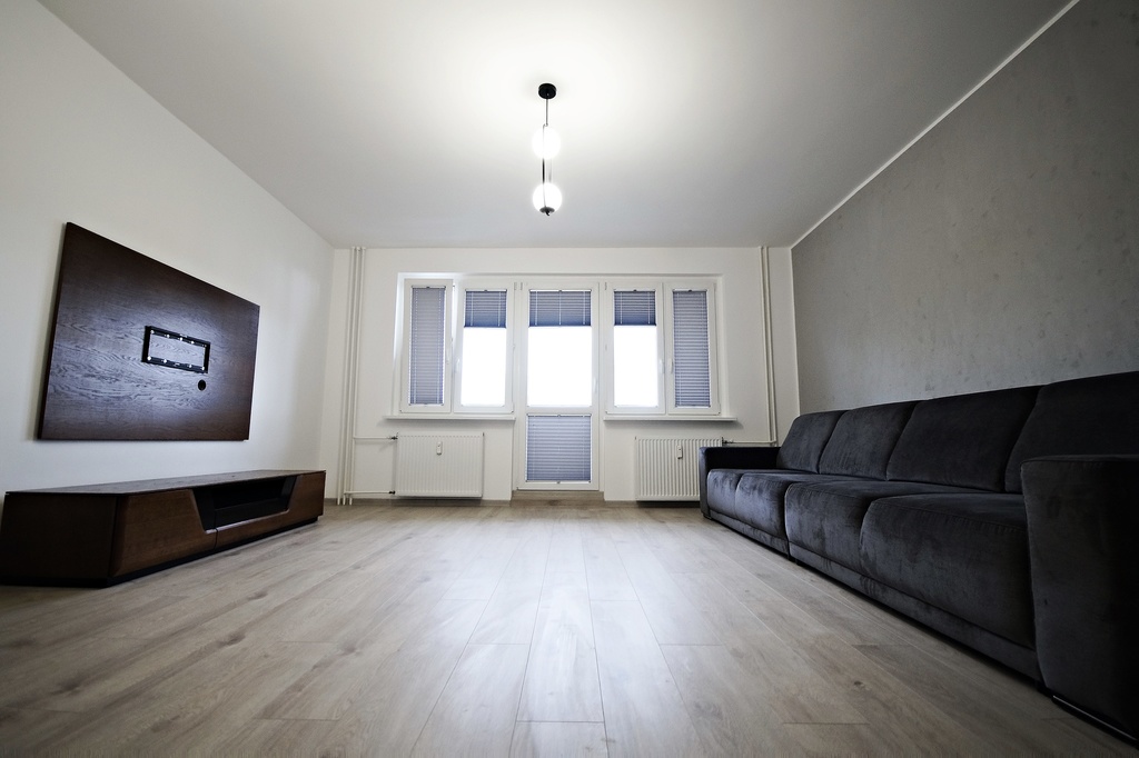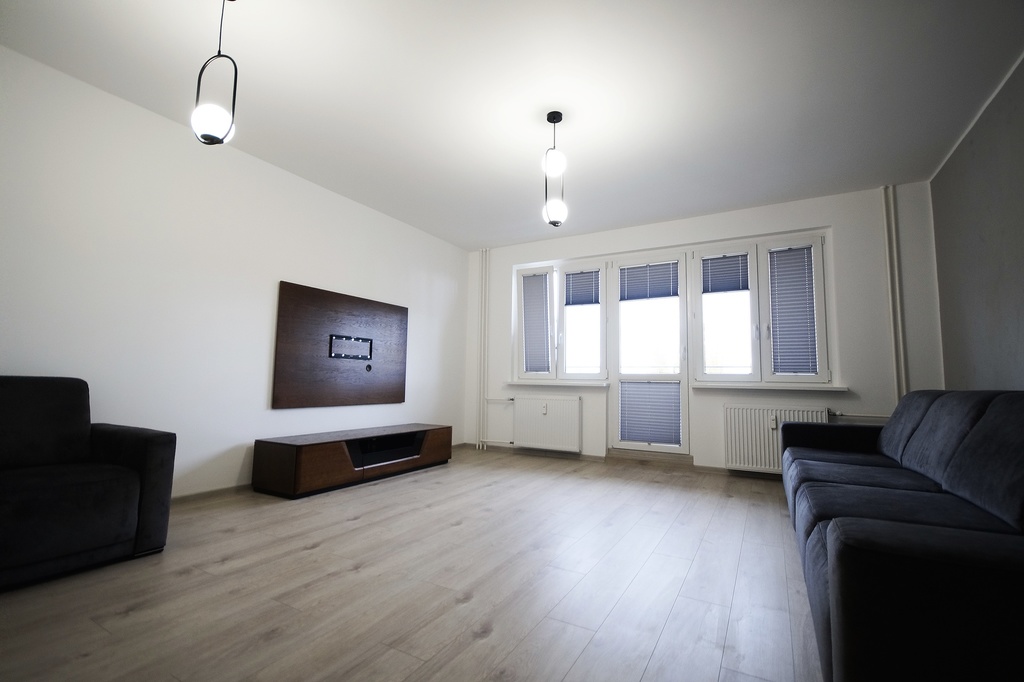 I am renting a 3-room apartment in the Słoneczne housing estate. There are numerous parking spaces around the apartment – free parking in the gated estate. Window exposure south-east and west. The apartment is located in a gated community in a low-rise building, with lots of greenery around. Very good accessibility to shops and public transport. Layout of the apartment. * The total area of the apartment is 71 m2 – Living room with an area of approx. 20 m2, equipped with a large seating area, armchair, TV stand, exit to the balcony, painted walls, panels on the floor. – Hallway 12 m2, at the entrance to the apartment there is a clothes hanger and a place for shoes, panels on the floor, smooth painted walls. – Bedroom 16 m2 with paneled floor, smooth painted walls, equipped with a double bed, bedside tables and a chest of drawers. – The second bedroom, 12 m2, with paneled floors, smooth painted walls, will be equipped with a sofa and a chest of drawers. – A modern separate kitchen of approx. 6 m2 with a stoneware floor, fully equipped with all household appliances (dishwasher, fridge, hood, electric cooker, gas hob. – Bathroom of approx. 4 m2 equipped with a shower, washbasin, tiled toilet and terracotta. Gated estate – possibility of parking in the gated estate – entry via remote control. The rent with all advance payments for hot water and heating along with the renovation fund is PLN 850. The apartment is available immediately. I recommend it due to its great location, very good neighborhood and colorful surroundings. I cordially invite you to the presentation