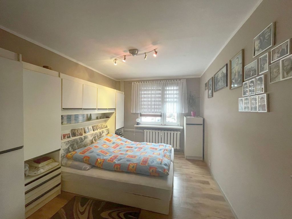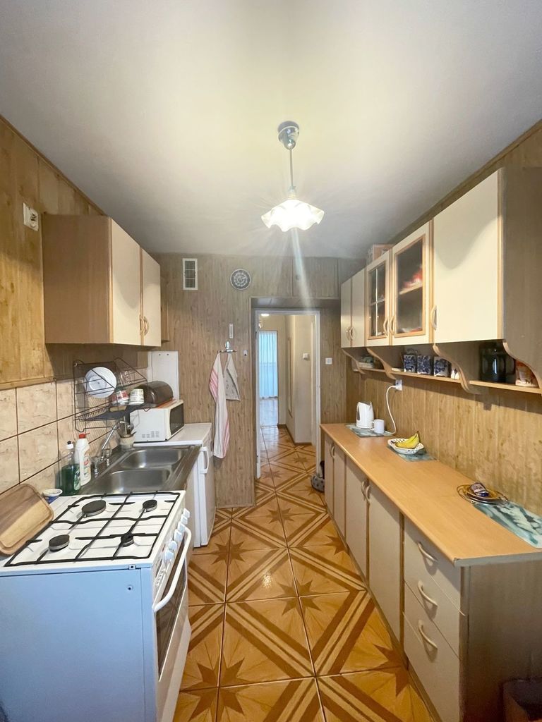 A very attractive 2-room apartment with a balcony, located on the ground floor of an insulated 4-story brick building. Scheduled rooms. All windows in the apartment are PVC. There are panels on the floor in the rooms. Walls wallpapered. The kitchen is large and very spacious, with a window, terracotta floor, tiles and panels on the wall. Bathroom and toilet separately. Heating from the municipal network – metered (annual returns). The staircase is well-kept. There is a lot of greenery in front of the house, numerous shops nearby. Negotiated price.
