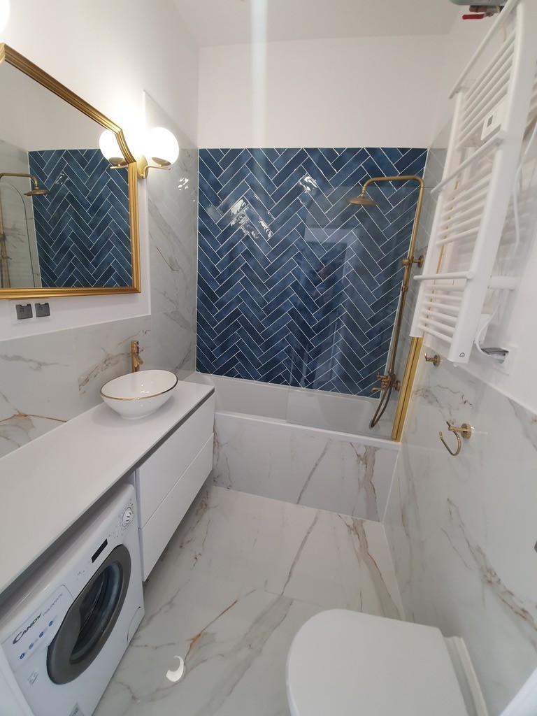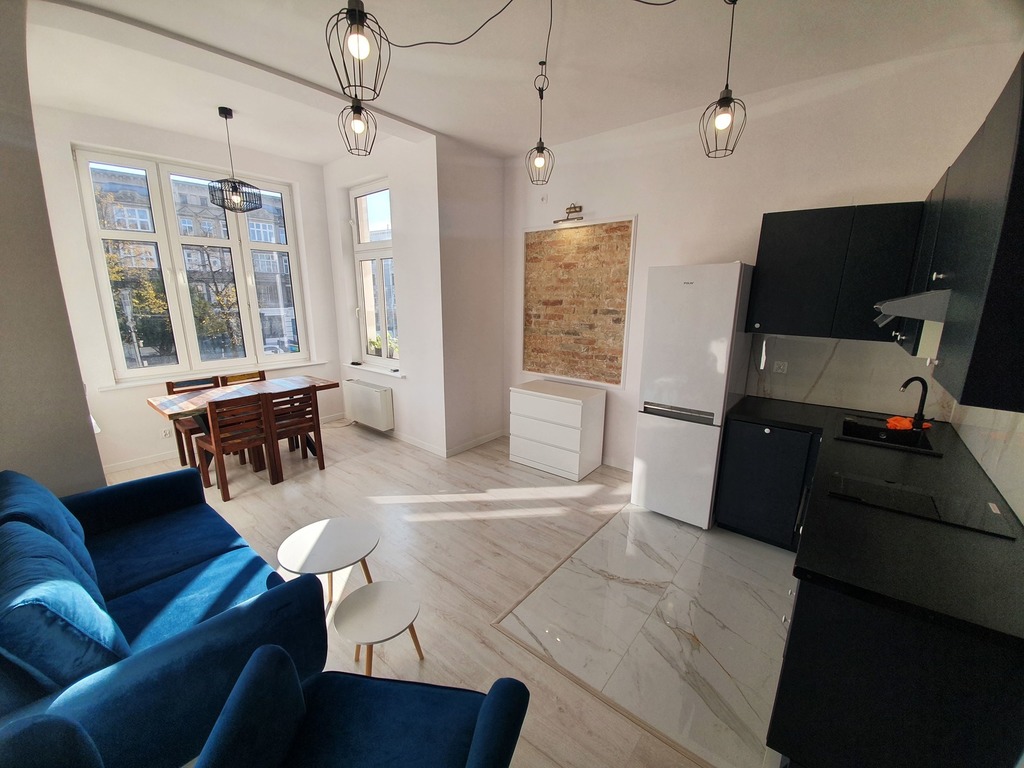 A recently renovated 2-room apartment for rent on the 1st floor in a tenement house at ul. Piastów 4 with an area of 40.63 m2. Great communication with the entire city, numerous tram and bus lines. Tenement house with a renovated facade and a well-kept staircase. The apartment consists of: living room with kitchenette, lots of daylight 22.10 m2 bedroom 10.07 m2 bathroom 3.5 m2 corridor 4 m2 The premises is furnished and equipped as in the photos. Windows of all rooms facing east and south. A bathroom in stylish colors with a bathtub-shower and a washing machine. Additional fees: community rent: PLN 135.70 + water + garbage + electricity. The premises have electric heating, hot water from an electric boiler. Deposit PLN 3,500. Available immediately
