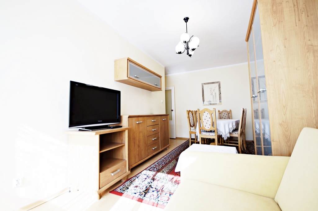Exclusive offer. I am selling a 2-room apartment on the second floor with a balcony in the center of Goleniów. There are public parking spaces around the building and numerous green areas where we can go for a walk in a pleasant environment. Windows exposed to the east and west. The location of the property is very charming, close to shops, schools, pharmacies and other public facilities. * The usable area of the apartment is 43.36 m2 – Living room with an area of approx. 12 m2, equipped with a large dining table with chairs, wall unit, sofa, smooth painted walls, panels on the floor, exit from the living room to a sunny balcony. – Hallway 8 m2, terracotta tiles on the floor, wainscoting on the wall. – Bedroom approx. 18 m2, paneled floor, smooth painted walls, equipped with a large bedroom bed and a wall unit. – Separate kitchen, fully furnished and equipped with household appliances. – Bathroom approx. 4 m2 equipped with a shower, washbasin, washing machine, tiles and terracotta. The apartment includes a basement with an area of approx. 3m2. The rent to the manager is PLN 540, including advance payments for heating and hot water from the municipal network, renovation fund, garbage collection, and cleaning. Additionally paid electricity and internet. I recommend it because of its great location and colorful surroundings. I cordially invite you to the presentation.
