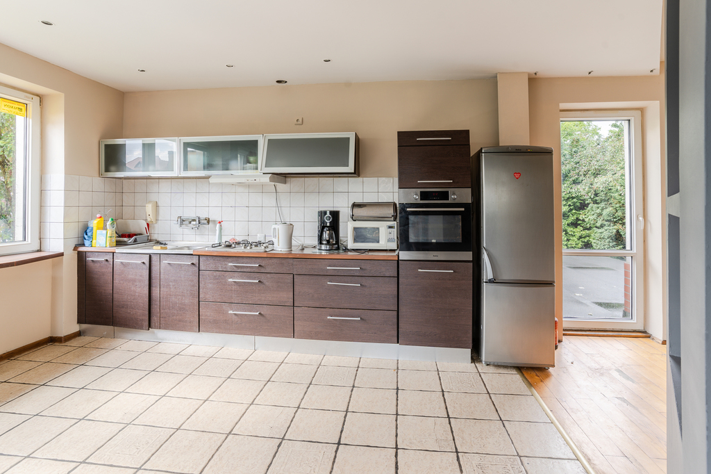 On level -1, constituting the so-called on the ground floor with windows located above ground level, there is a room and an entrance to the garage with space for two cars. Garage rental is subject to an additional fee.