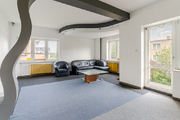 On the high ground floor there is a large living room with a kitchenette and a bathroom with a toilet. From this level there is access to a large terrace.