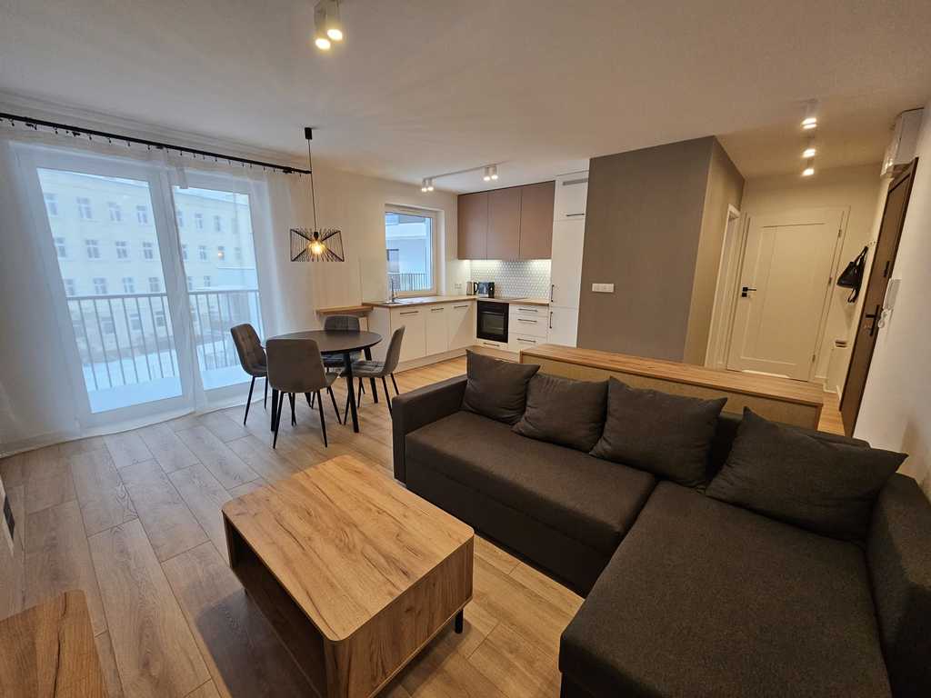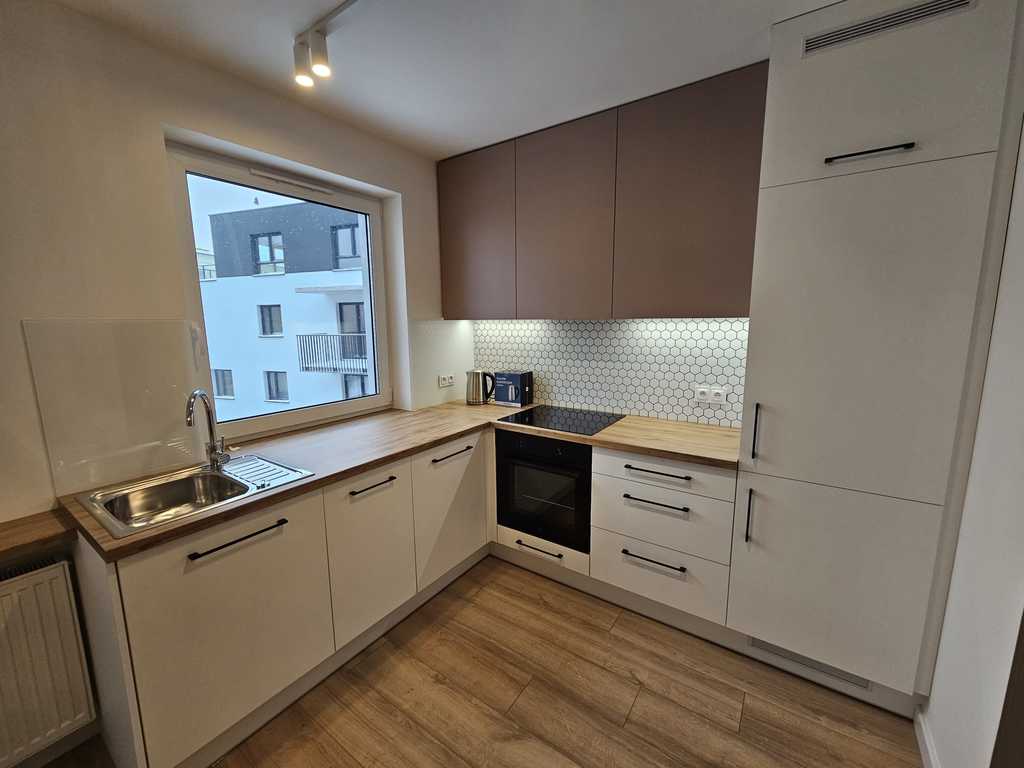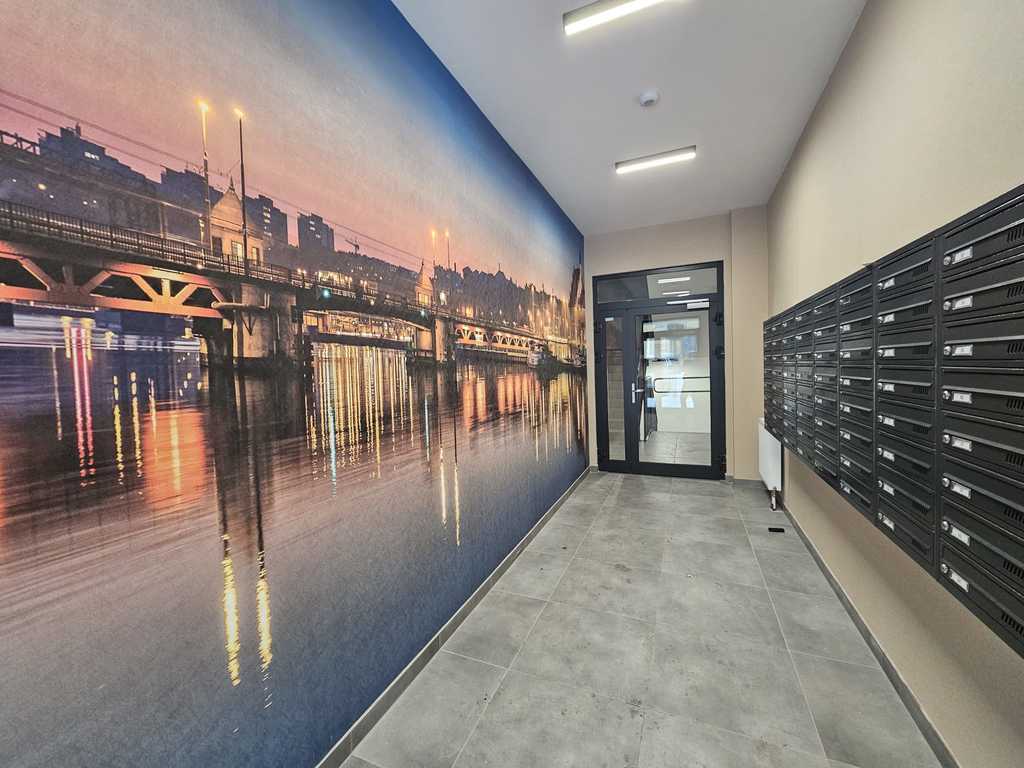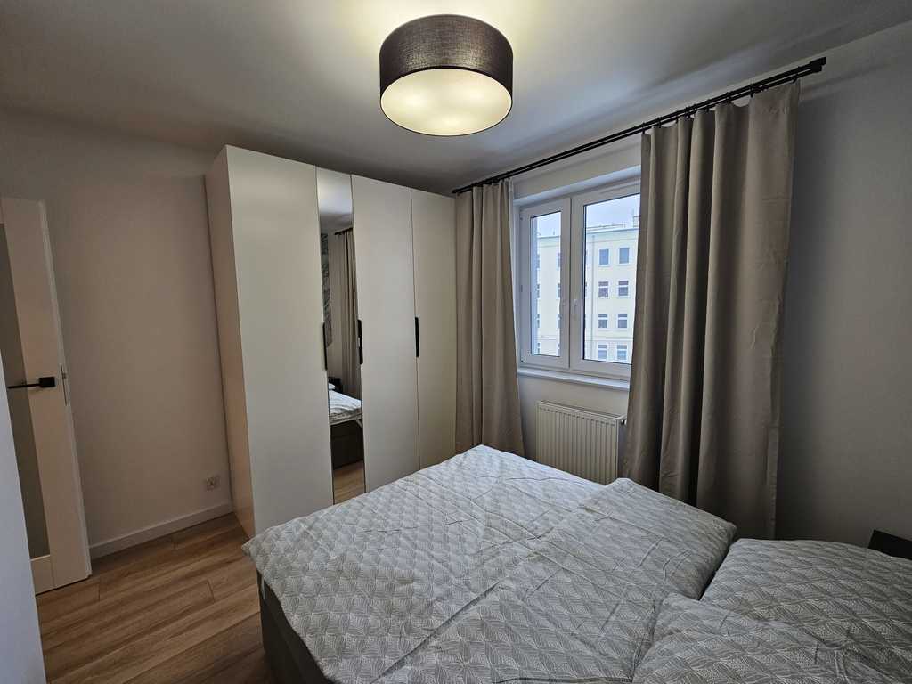 Dwell First! A new, comfortable 2-room apartment with an area of 41.86 m2 in a new apartment building with an elevator on Wały Chrobrego, close to the center. A high standard apartment with access to a large balcony. The building is equipped with a silent elevator. The apartment is fully furnished and equipped. Kitchen with household appliances such as an electric hob, hood, fridge with freezer, dishwasher. The bathroom has tasteful tiles, a bathtub with a shower screen, and a washing machine. Arranged rooms, living room with access to the balcony. The apartment includes a garage space under the building (open space), paid additionally PLN 300/month. The offer also includes access to a storage room of approximately 3 m2. Additional fees include rent approx. PLN 550 SEC (heating) + electricity. Contract for a minimum of one year. Release date immediately. Deposit PLN 4,000. Perfect location, close to public transport, restaurants, Wały Chrobrego and Boulevards.