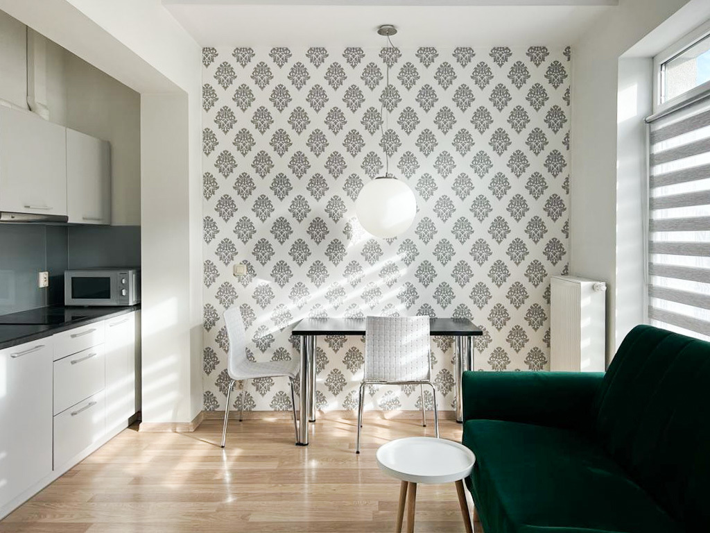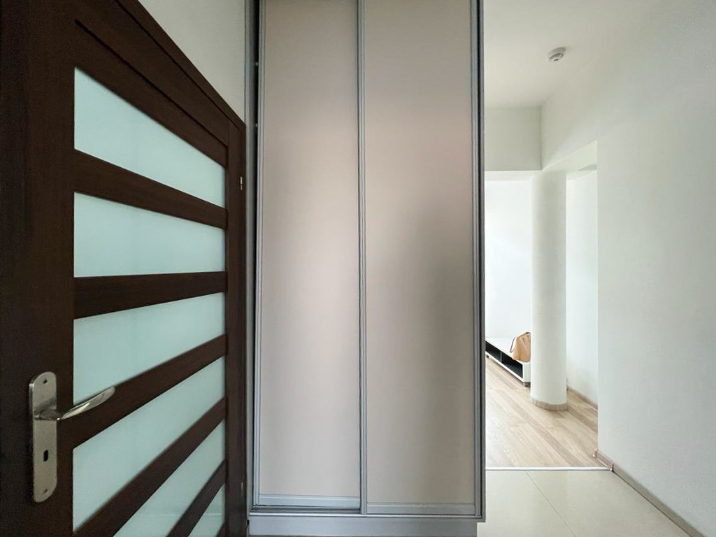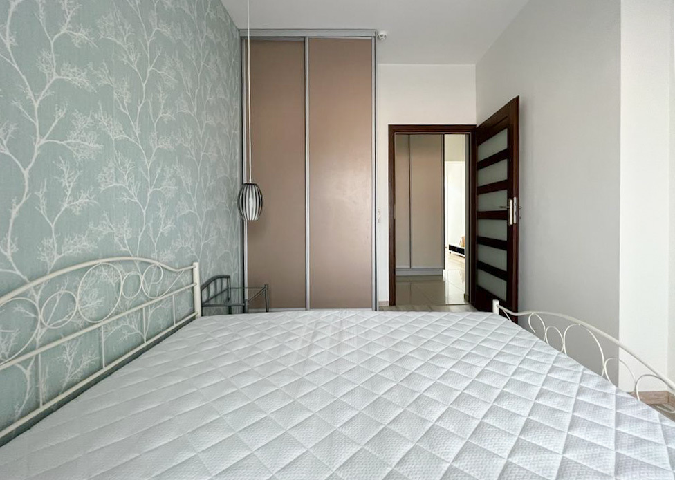 The restaurant is equipped with built-in kitchen furniture with household appliances, commander cabinets. We especially recommend it to people expecting comfort and convenience. One of the advantages of the apartment is its location in the city center. A modern tenement house, in which the apartment is located, is equipped with the following installations: – TV and alarm system, – fire alarm, – intercom, – district heating (PEC).