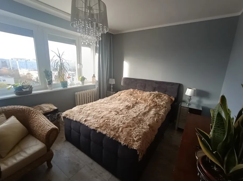 Apartment (cooperative ownership right to a residential premises) 3 rooms at ul. Santocka on the ninth floor of an 11-story skyscraper with two elevators. The area of 70.30 m2 consists of a living room, two bedrooms, a separate, bright kitchen, a bathroom with a bathtub, a separate toilet and a large hall. Bright and sunny apartment. From the living room there is access to a large balcony with a beautiful view. Kitchen with built-in furniture and household appliances. The apartment is beautifully renovated and decorated. The rent for the cooperative with an advance payment for heating, hot and cold water, renovation fund and gas is PLN 716.00. The apartment includes a basement. There is a large parking lot for residents in front of the building. The apartment is in a great location, next to the building there is a school, kindergarten, playground, numerous shops and public transport stops. Price PLN 649,000 negotiable