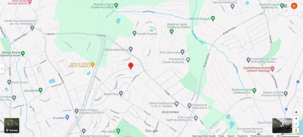 Quiet, green, low-rise buildings, close to Family Allotment Gardens. You can go to Żabka in slippers, and around the corner there is a dynamically developing housing estate called Małe Błonia with more and more amenities. Market Leclerc is just a minute’s drive away. For motorists, it is possible to move in several directions depending on the time of day, traffic, etc. Work is also underway to extend Królewski Street up to Ogrodnicza and beyond, i.e. Szosa Polska. If we want to use public transport a few dozen meters from the house, we have line 99 at our disposal, and a little further there are also lines 68, 89 and 82. School, kindergarten and high school are only 500 meters away, and it’s all downhill…
