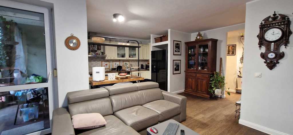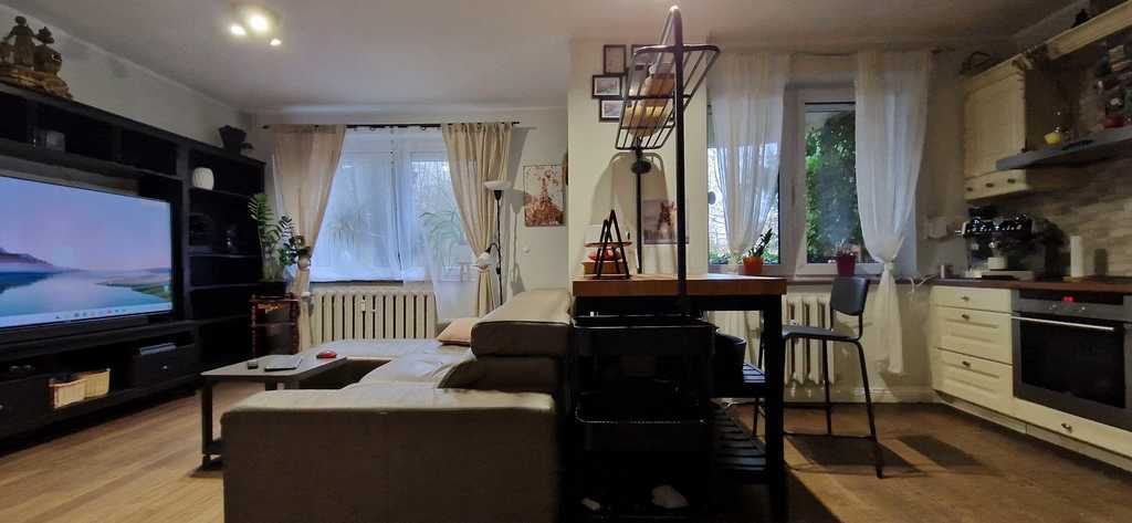 Bukowe estate, 3-room apartment (originally 4 rooms) with an area of 84 m2, located on the high ground floor of a building from the late 1990s. Arranged rooms, kitchen open to the living room, bathroom with bathtub, separate utility room with space for a washing machine and dryer. Apartment after modernization; the entire electrical installation was replaced, the classic hall was abandoned, and the floors were finished with wood. From the living room there is an exit to a charming, green balcony (west) with an area of approx. 9 m2, and from the east there is an exit to a large terrace with an area of approx. 30 m2. Heating and hot water from the municipal network. Administrative rent PLN 1,200. The apartment includes a basement. It is possible to purchase a garage under the terrace.