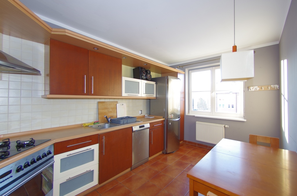 A large, spacious apartment in a good location in the Right Bank part of Szczecin. The apartment includes: A large living room with a balcony, two bedrooms, a large separate kitchen, a bathroom with a toilet, a dressing room and a hall. There are panels on the floors, painted walls, a bathroom with tiles and a terracotta corner bathtub. The kitchen is furnished and equipped (new dishwasher). Heating and heat from a two-speed furnace. Great location near Outlet Park and the Helios cinema, McDonald's, Pizza Hut, schools, … Keys in the office, I invite you to the presentation