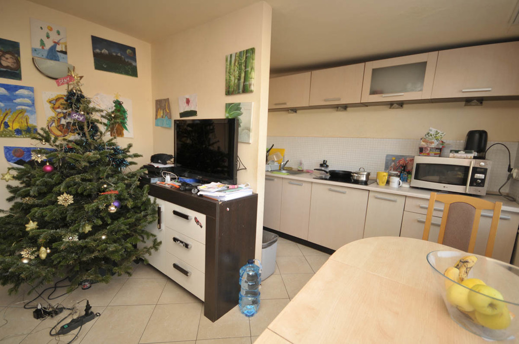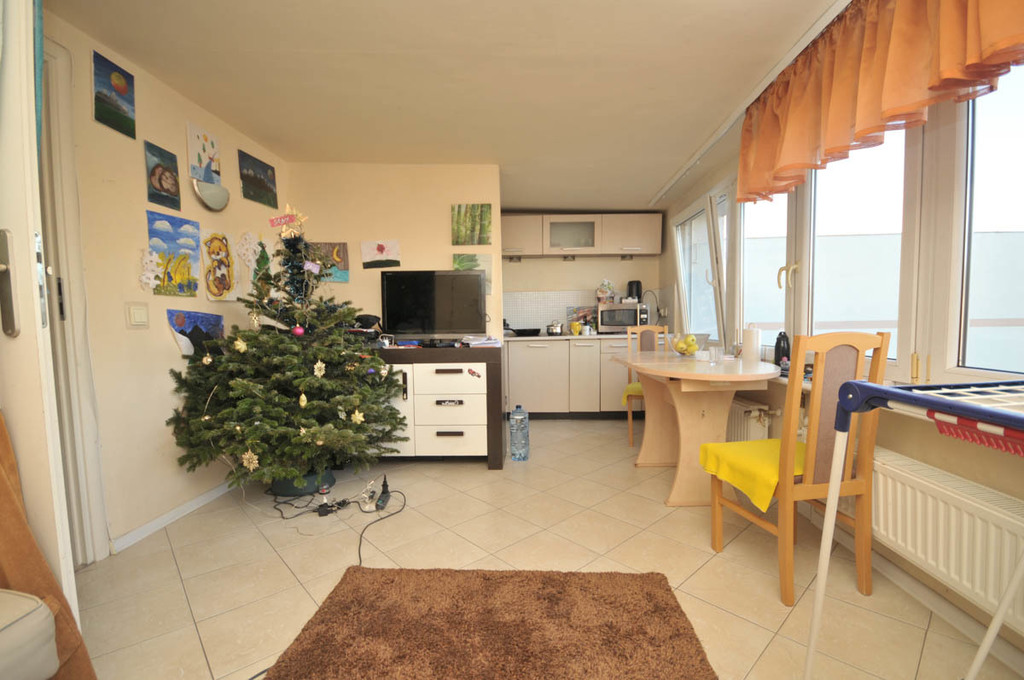The apartment is located on the 5th floor in a 5-story building without an elevator. The top floor has a slightly inclined roof, which is visible in the apartment, but it is not bothersome.