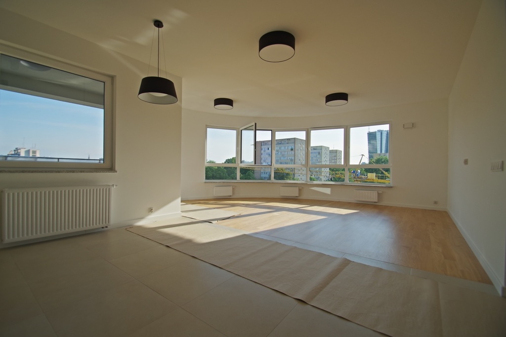 A beautiful, sunny apartment in a new apartment building in a great location in the Nautica Housing Estate. The area of 106 m2 consists of two bedrooms, a large living room open to the kitchen and access to a spacious, sheltered balcony, and two bathrooms (one with a bathtub and one with a shower). The apartment is finished with high-quality materials, a fully equipped kitchen, three built-in wardrobes. Rent PLN 6,000 + PLN 550 rent to the Manager + electricity and SEC fees. Apartment on the 10th floor with a view of the greenery and the panorama of Szczecin. For the exclusive use of the tenant, one garage in the underground garage and 3 storage rooms. Guarded housing estate, well connected to the city. Full infrastructure – Manhattan Market, Galaxy, public transport, shops. The apartment is ready for delivery, contract for a minimum of one year, deposit negotiable. I cordially invite you to the presentation. Keys in the office