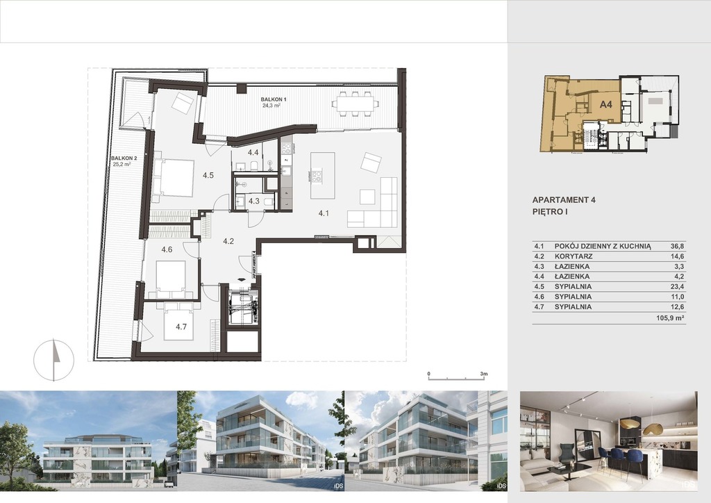Each of the apartments combines elegance and unconventional design, creating an elite space of the highest standard. The apartment provides stylish, unique and functional interiors equipped with an intelligent, fully automatic Basalte system, which will make managing the space simple and intuitive. Individual elevators will provide comfort, while the underground garage guarantees space for two cars for each of the apartments.