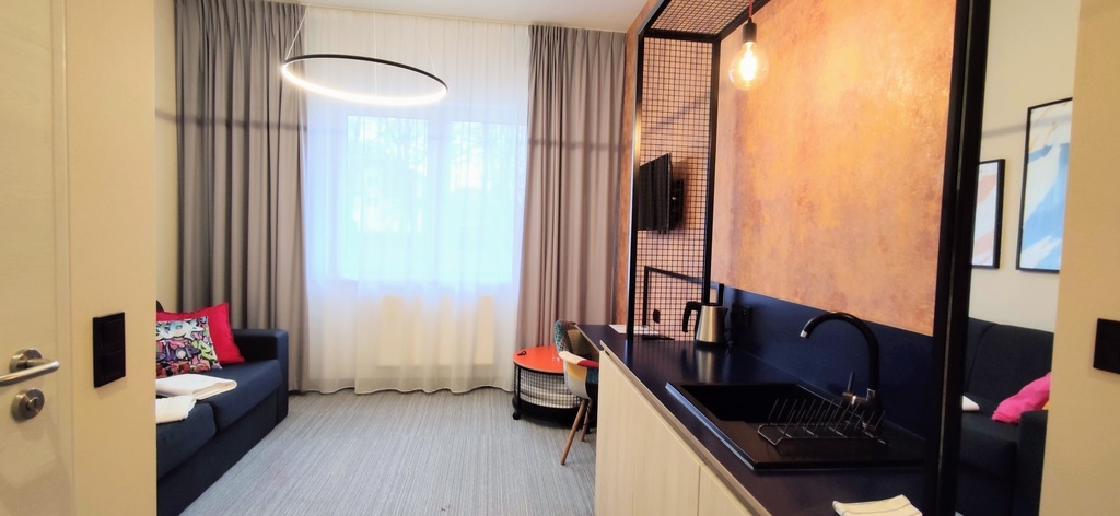OPPORTUNITY ! TAX-FREE OFFER 2% PCC for the buyer! With VAT invoice upon purchase. Very attractive price – 23% VAT is included in the price. Net price of the apartment – PLN 229,268. VAT can be deducted both as a company and as a private person not running a business. Full ownership. A well-known and popular apartment building – INDU, in the western part of Kołobrzeg, at ul. Spokojna, 700 m from the sea. Attractive location close to the sea guarantees accommodation all year round. Full VAT refund, also for persons not running a business. 1-room apartment with a kitchenette, bathroom, on the ground floor of a modern industrial-style building, with an elevator and a restaurant. The premises are 17.04 m2, well-designed, every centimeter of space is used, meeting tourists' expectations in terms of comfort and aesthetics. Fully equipped and furnished to hotel standards, in an industrial style. Equipment: fridge, hob, sink, furniture, wardrobe (safe for guests), table with storage compartment, foldable, comfortable bed for 2 people (hotel mattress) Low maintenance fees – approx. PLN 195 (including advance payment for water, heating) , electricity consumption fee according to the meter. Apartment with windows facing west. The high ceiling creates more space despite the small size of the apartment. Investment in the western district of Kołobrzeg, approx. 700 m from the beach and seaside park, close to bicycle paths, running routes, shops, restaurants, excellent communication with the city. The facility is adapted to disabled people. The new owner acquires not only the premises, but also a ready-made business, with the possibility of taking over a contract with a good operator in a well-known tourist facility with a Lobby Bar, providing guests with a hotel standard and the owners with stable rates of return, an apartment in the largest health resort, a city visited all year round in the summer season over a million tourists There is a beautifully organized common space in front of the building: A spacious lobby bar with access to the garden. Maintenance-free and automated facility (electronic keys). Outside, there is an organized place to relax (sofas, tables). Bicycle room for owners and customers. There is a parking space for guests in front of the building (paid per day according to the facility's price list). An ideal investment for people looking for an inexpensive premises with low maintenance costs, both for business purposes, for short and long-term rental, and for their own needs. The area is away from the main street, so it provides rest and relaxation in peace and quiet. Offer available only with us. We invite you to the presentation