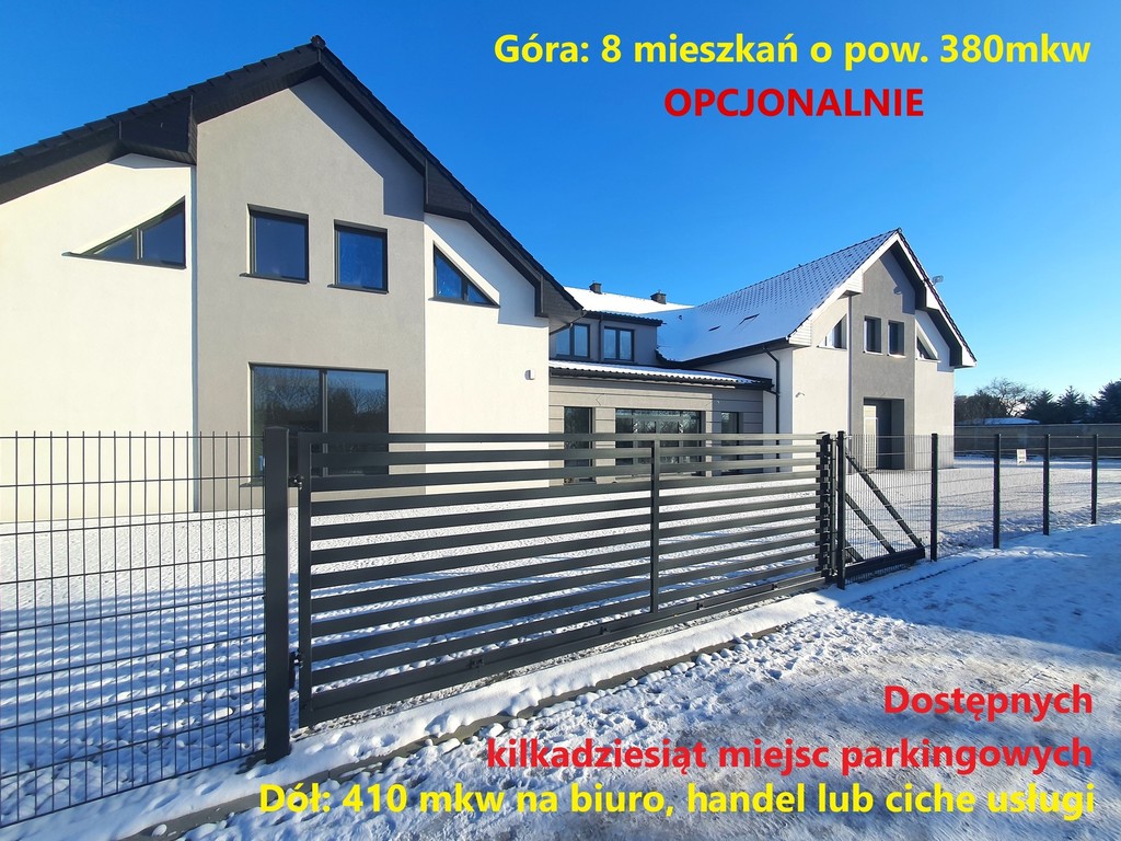 – 2 remote-controlled gates with the possibility of separating part of the parking lot for the company (approx. 10 spaces) and for residents (approx. 20 spaces), plus numerous public parking spaces along the street.