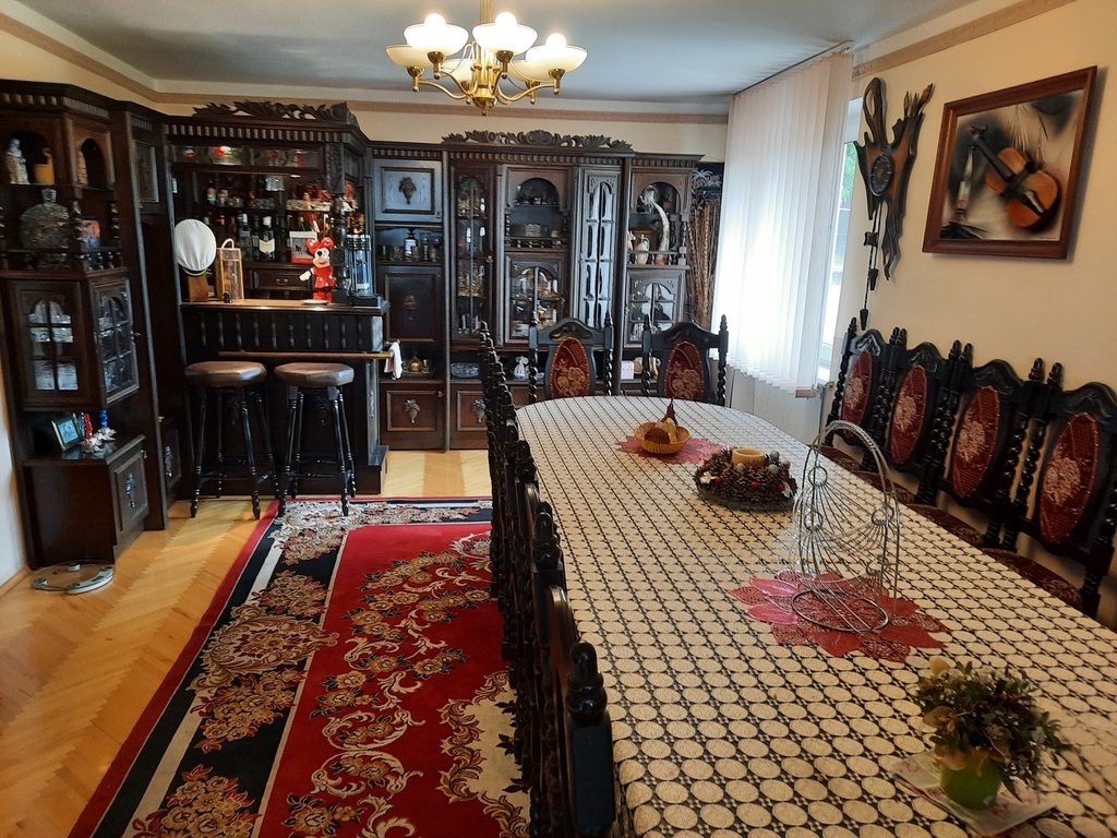Single-family, detached, 5-room house with a usable area of 120 m2, total area of 159 m2, located in Dąbie in the right-bank part of Szczecin. Garage for 3 cars. Plot of 908 m2, in the shape of a rectangle with sides 20 m and 43 m. Access by asphalt road. The house was built in 1968, made of brick, insulated, with a flat roof covered with felt. GROUND FLOOR: large living room approx. 43 m2, bedroom with built-in wardrobe 18 m2, separate kitchen approx. 14 m2 with a small pantry, bathroom, hall. FLOOR: 3 bedrooms, large terrace approx. 32 m2, bathroom. BASEMENT: utility rooms, sauna, gym and boiler room. At the back of the house there is a very nicely landscaped garden area with a gazebo and utility rooms, a workshop, a pond and a barbecue. The water, sewage and electrical installations were replaced. Access to city water and own water intake on the plot. Gas heating, additional coal stove and fireplace. The house is available by arrangement. The property is suitable for both housing and running a light business.