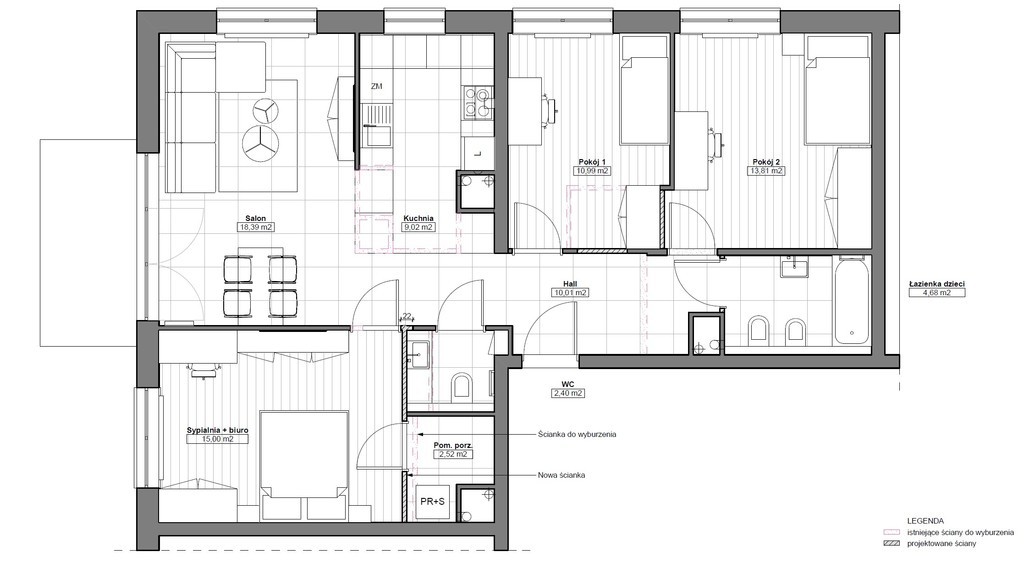 A four-room apartment for sale in a low-rise block from 2018, located on the 3rd floor. The apartment has an area of 84.5 m2 and consists of: * living room with kitchenette * bedroom with wardrobe * toilet * hall * 2 bedrooms * bathroom The rent to the manager is approx. PLN 650, including advance payments for heating and hot and cold water . Air conditioning has been installed in the apartment. The apartment is very bright and spacious, finished with the highest quality materials with attention to detail. The property overlooks green areas. The area is well-kept and quiet. The apartment is ideal for a family with children, close to playgrounds, kindergartens, nurseries and Przygodna park. Together with the apartment, it is possible to purchase two garage spaces in the underground garage for PLN 75,000. for each garage (purchase is not obligatory). Possibility of deducting VAT when purchased by a company. The property is ready to move in! I invite you to the presentation.