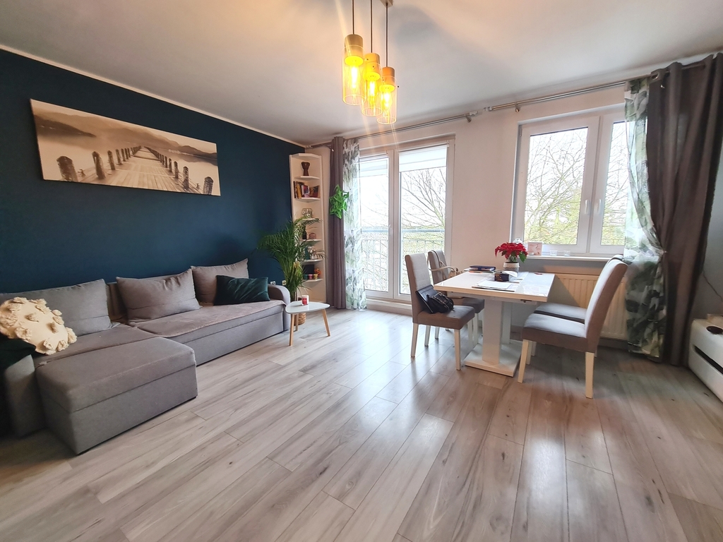 We offer for sale a nice and well-kept two-room apartment on the third floor in a low-rise building in Pogodno. The usable area of 53.5 m2 (59 m2 on the floor) includes: a living room without slopes, a bathroom, a bedroom, a separate kitchen and a corridor with an entrance to an adapted and heated attic – mezzanine with an area of approx. 20 m2. The apartment is equipped with energy-saving triple-glazed windows and a new condensing furnace, which makes the apartment cheap to maintain. Hot water from a two-circuit gas furnace. The rent is PLN 390 per month. The property is equipped with furniture, electronics and household appliances, which are included in the price – which is a great comfort as it does not require additional financial outlays for equipment. The apartment also includes a closed garage, located in the garage under the building, as well as a storage room with an area of 0.97 m2 and a storage room of 1.7 m2. A very big advantage is the location – in close proximity to the University of Szczecin and the stadium – for Pogoń fans. A perfect place for those who value the convenience of living in the center, while having at their disposal the beautiful and quiet area of old Pogodno and easy access to public transport. Numerous shops, a market square, a pharmacy, a clinic, a school and Orlik. A great investment opportunity – both the apartment and the garage are currently rented to two different tenants who are willing to extend their contracts. Price is negotiable ! I heartily recommend it and invite you to the presentation.