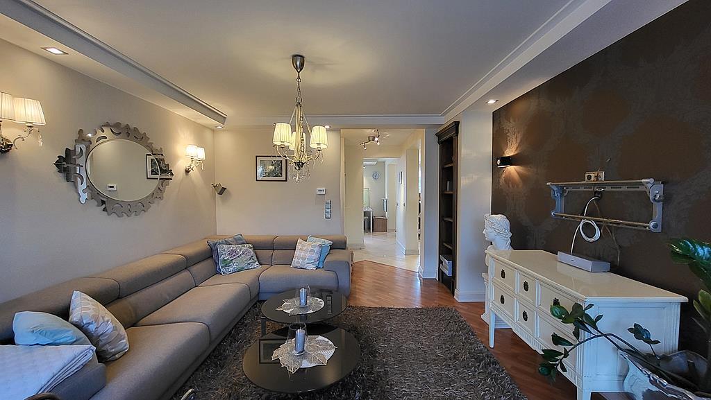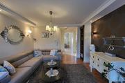 The apartment is being sold partially furnished (the kitchen units and appliances remain, as well as some of the furniture visible in the photos).