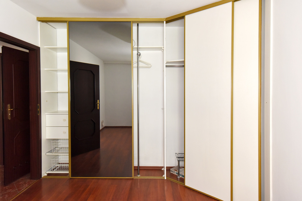 In the second bedroom: a large sliding wardrobe with sections for clothes and books;