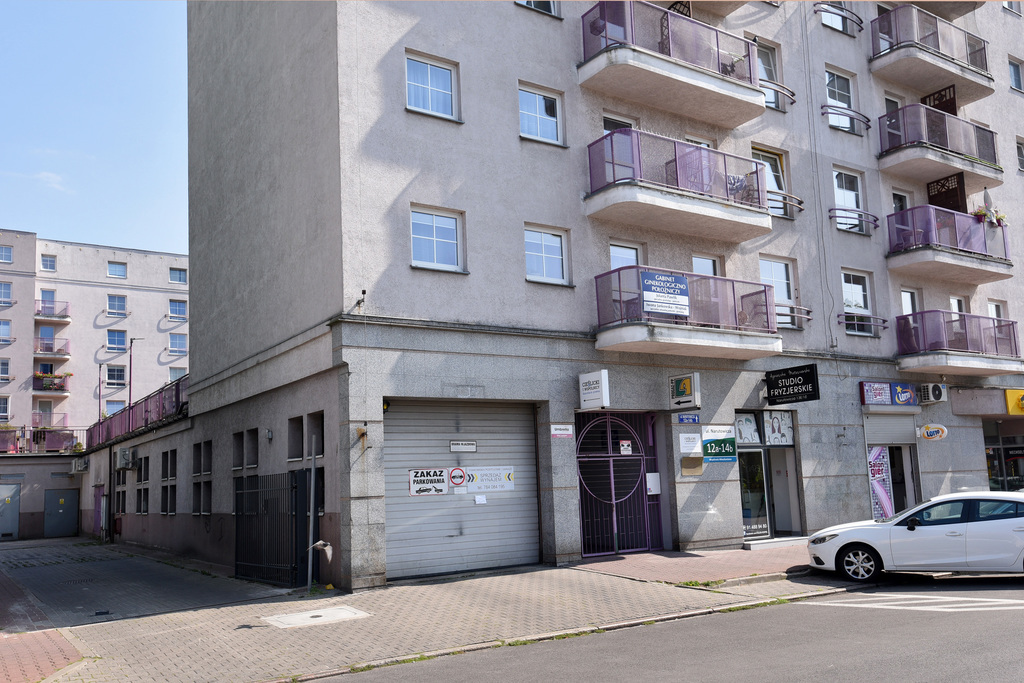 Under the building: shopping arcade with numerous shops (Netto, Rossman, Pepko), pharmacy, post office, PKO BP bank, clinic (NFZ), Diagnostics point – medical laboratories, Sedimed Medical Center, flower shop, newsstand, tailor’s point, currency exchange point e.t.c.