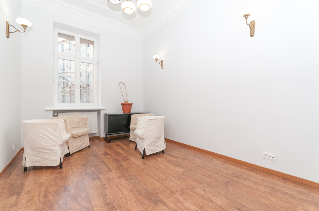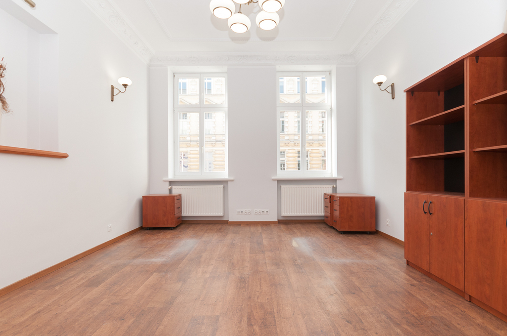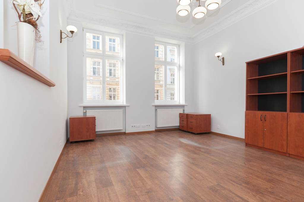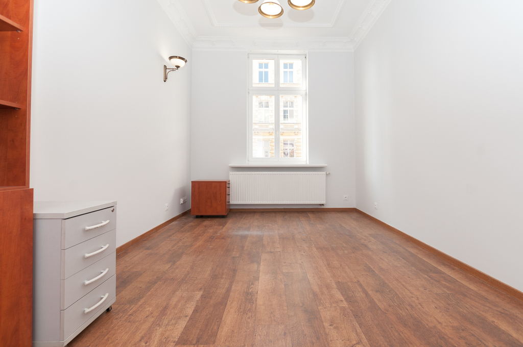 A premises for sale in the very center of Szczecin, near the Prince Bogusław X promenade. The premises are located on the first floor in a beautiful, renovated tenement house. The area of 75.74 m2 consists of 3 large rooms with sizes: 13.23 m2, 17.13 m2 and 22.72 m2, a fully equipped social room/kitchen, bathroom with shower and a hall. The original stucco has been preserved in the rooms. The convenient layout of the premises is an additional advantage.