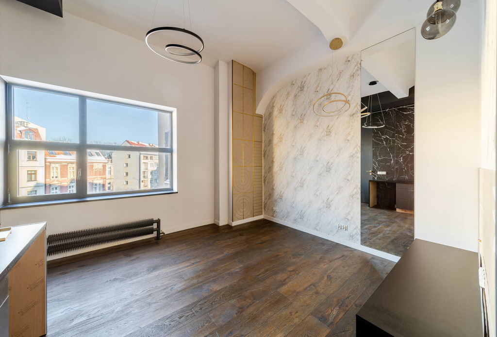 The height of the rooms is almost 3 m. Wooden floors, high standard of finishing and stylish equipment, massive windows with a beautiful view of Orła Biały Square are just some of the advantages of this place. Central heating and air conditioning in the room.