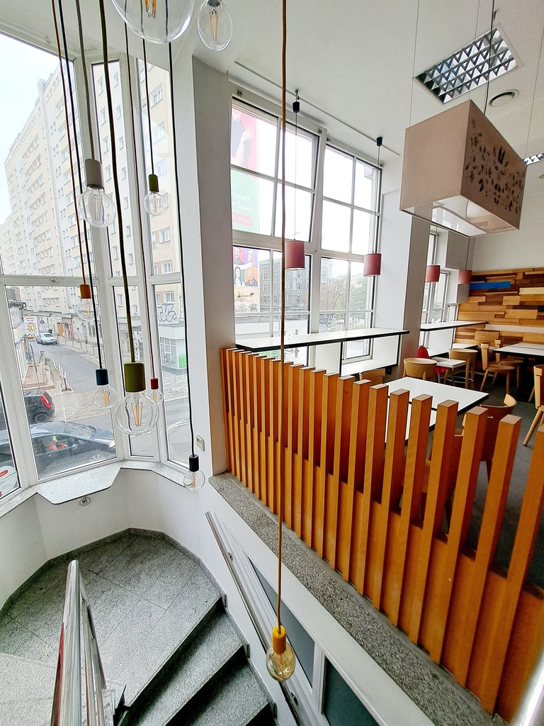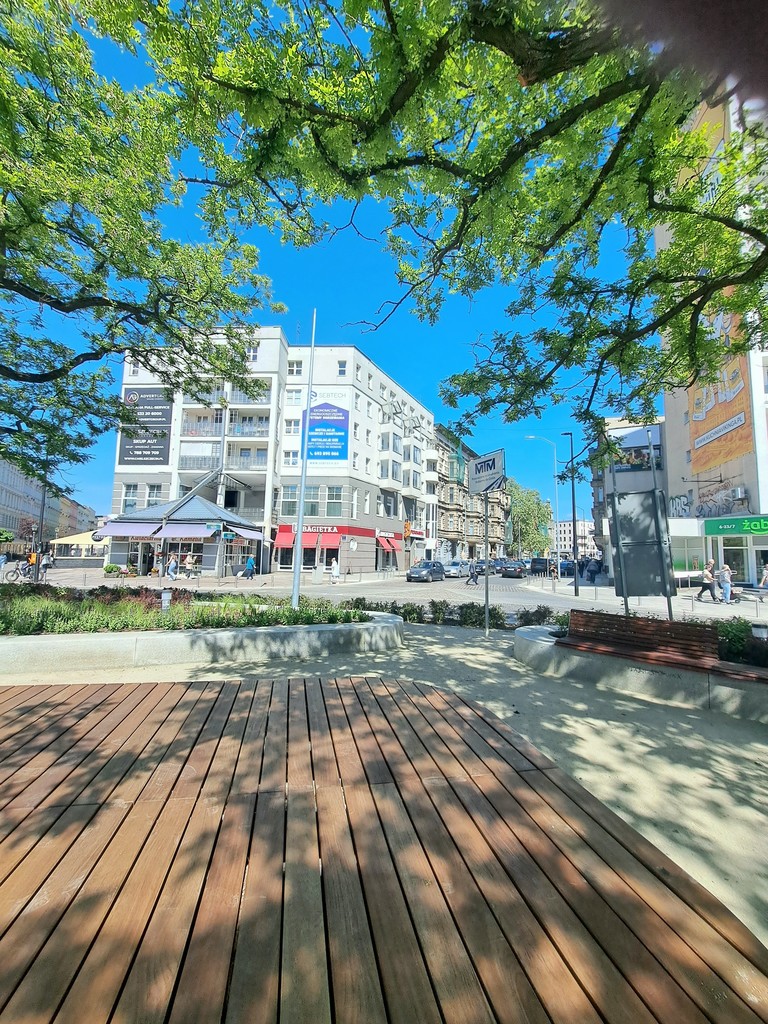 The premises are located at Plac Zgody at the exit from the newly opened Aleja Wojska Polskiego, which has undergone complete modernization and looks spectacular. There are benches and wide walking areas everywhere.