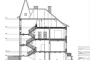 The spectacular shape of the building stands out from the background of modern apartment buildings and was renovated under the supervision of a conservator.