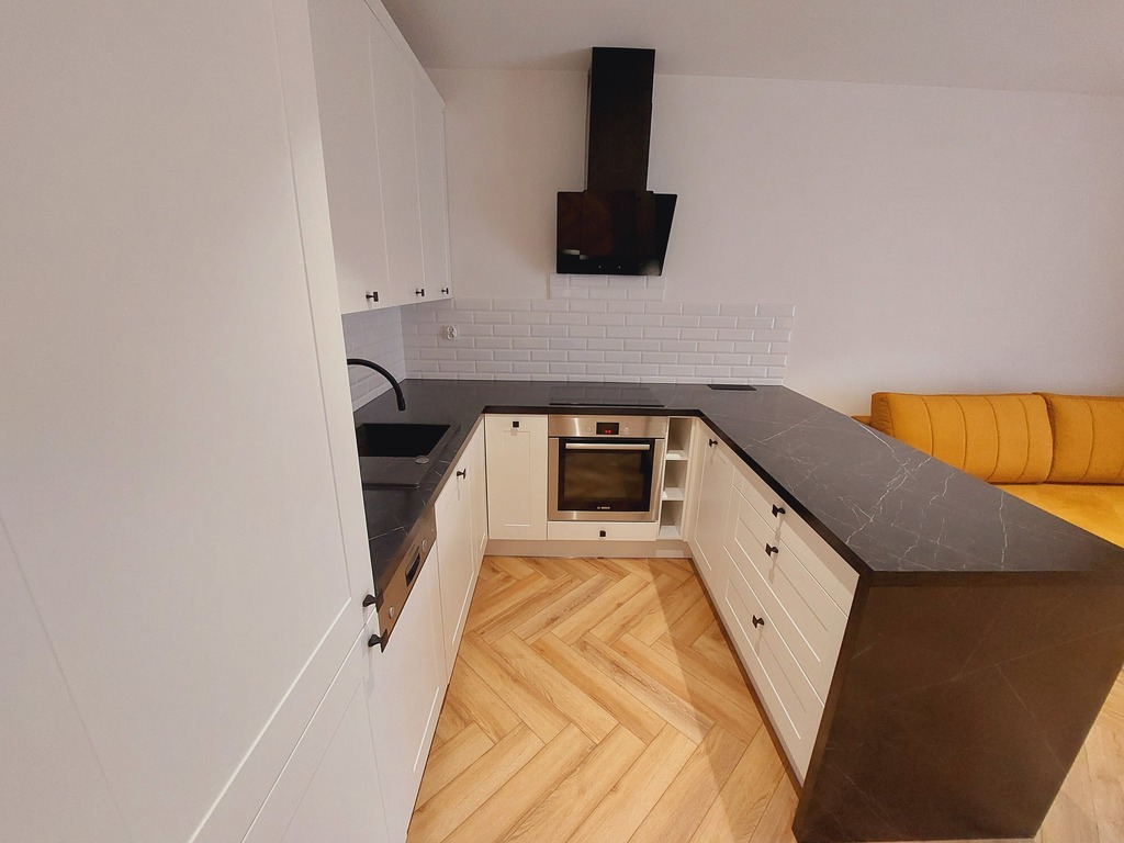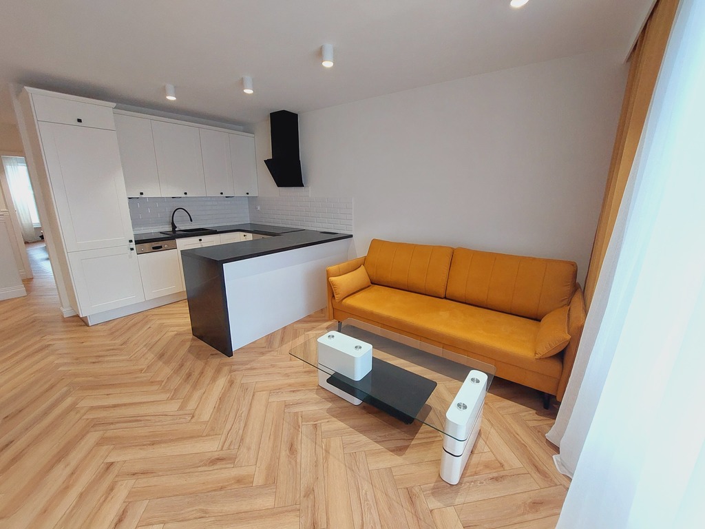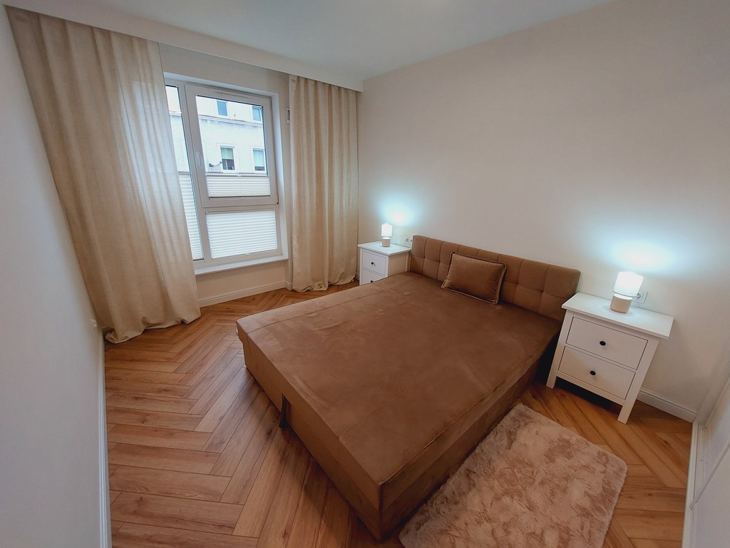 Szarotki Street, new 5-story building. 2-room apartment located on the 4th floor. No one lived in the premises yet. Everything is new, decorated very nicely. Living room with access to a large balcony on the south side. The balcony faces the yard. Even though we are located in the city center, there is almost no traffic noise. This room is connected to the kitchen. Fully furnished and equipped with household appliances, such as a large fridge, dishwasher, hood, oven and hob. The kitchen area is separated from the room by an island with drawers and a comfortable worktop. Bedroom with a large two-door wardrobe with mirrors. Bedside tables with lamps. Blinds on the windows are adjustable. Spacious, bright hall. Bathroom with beautiful tiles. There is a shower, sink and toilet. The rent is PLN 2,500, additional fees include the rent for the manager (including the fee for hot and cold water, heating is PLN 550). It is possible to rent a parking space in the underground garage for PLN 300 (plus a fee to the manager of PLN 150). Form of lease – "occasional rental" Deposit: PLN 5,000. Real estate agency's offer