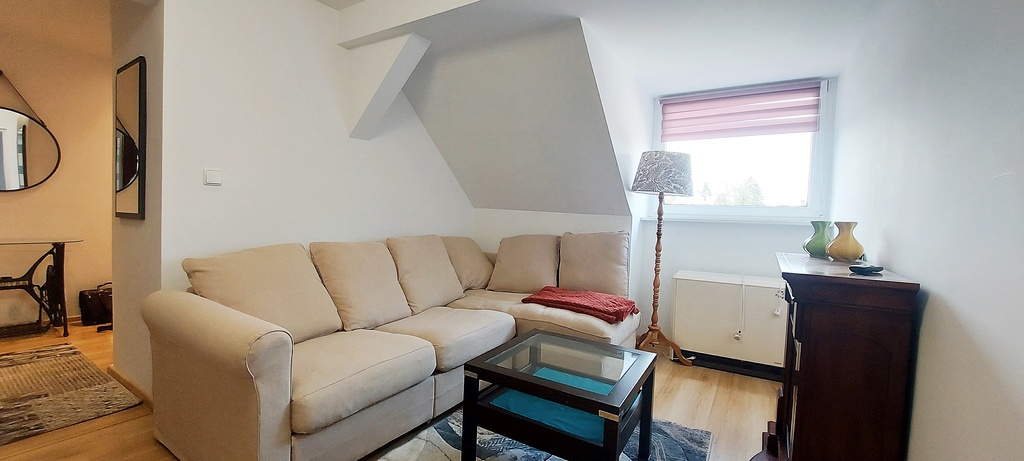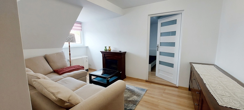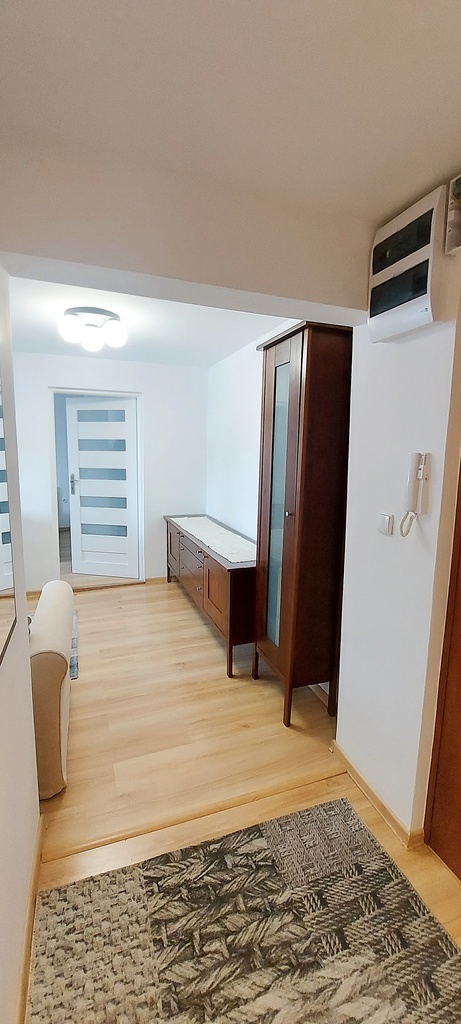 I will rent a 3-room apartment in the Łękno district near Pogodno. There are numerous parking spaces around the apartment. Window exposure south-east and west. The apartment is located in a gated community in a low-rise building, with lots of greenery around. Very good accessibility to shops and public transport. * The area of the apartment is approx. 43 m2 – Living room with a corner sofa with a sleeping function, TV cabinet, electric fireplace, plastered and painted walls, panels on the floor. – The hall at the entrance to the apartment has a clothes hanger and a place for shoes, panels on the floor and smoothly painted walls. – Bedroom 1 has panels on the floor, smoothly painted walls, equipped with a large sleeping bed, bedside tables and a two-wing wardrobe for clothes, in the bedroom on the right there is a small alcove that can be used as a dressing room. – Bedroom 2 is equipped with a two-wing wardrobe, a desk, a bed/sofa with a sleeping function, a table, panels on the floor, smooth painted walls. – Separate kitchen with dining room on the floor, fully equipped with all household appliances. – Bathroom equipped with a shower cabin, washbasin, toilet in tiles and terracotta. The rent with advance payments for water, sewage and garbage, administration fees and renovation fund amounts to PLN 310. Deposit required. Occasional rental. The apartment is available immediately. I recommend it because of its great location, very good neighborhood and colorful surroundings. I cordially invite you to the presentation.
