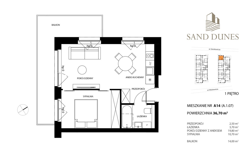 Apartment with an area of 36.7 m2 with a sea view in a building located by the sea, first line from the beach. Living room with kitchenette 19.7 m2, bedroom 10.7 m2. Hallway 2.5 m2. Bathroom 3.7 m2. Balcony 14 m2. 1st floor of a low building. Sand Dunes in Dziwnów is an intimate investment consisting of two buildings with unique architecture located in an ideal location, in the first line of development, with a view of the Baltic Sea on one side and the Dziwna River and Wrzosowska Bay on the other. The investment is only 60 m away from the sea, and access to the beach directly from the investment area will meet the expectations of the most demanding customers. Possibility of finishing at the customer's request and rental management. There are charging stations for electric cars in the underground garage. Access to the garage by elevator. The four-story buildings will house 68 functional apartments with sizes ranging from 36 m² to 100 m². Some apartments located on the ground floor will have maintenance-free gardens, and apartments on upper floors will have spacious balconies or terraces. Luxury apartments on the top floor will also have access to individual terraces on the roof of the building. The facility includes a dry sauna, gym and Kidsclub. The apartment will be available in 2024, turnkey finishing possible.