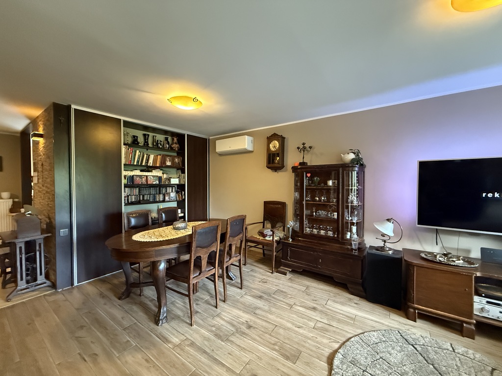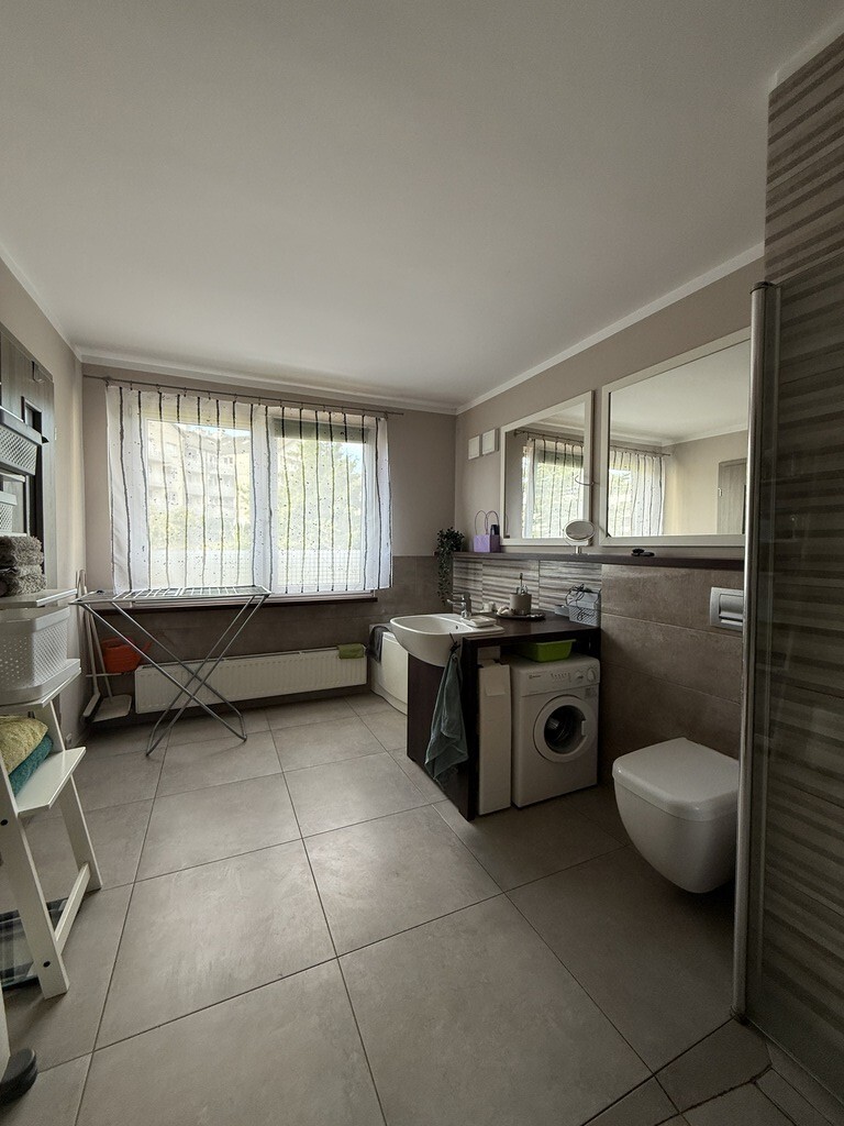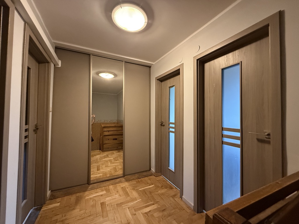In a quiet and peaceful street with a beautiful garden. A terraced house for sale, located in a peaceful and quiet district of Żelechów. The total area of the house is 162.63 m2. The area consists of: Ground floor: kitchen, living room with fireplace with access to the terrace, hall, toilet and vestibule. First floor: three bedrooms, two of which have access to the balcony, bathroom with toilet, dressing room. Ground floor: : utility room, two rooms with access to a beautiful garden and a garage. A very well-thought-out layout of the rooms, large windows, which ensure excellent lighting of the interior, and modern technological solutions – photovoltaics. The property is in a very good standard, smooth and painted walls, panels on the floors, furniture in the kitchen with household appliances, bathrooms with tiles and terracotta. Parking spaces in front of the house. The property is located on a nicely developed plot with an area of 472 m2. I recommend and invite you to contact me personally to arrange a viewing of the property.