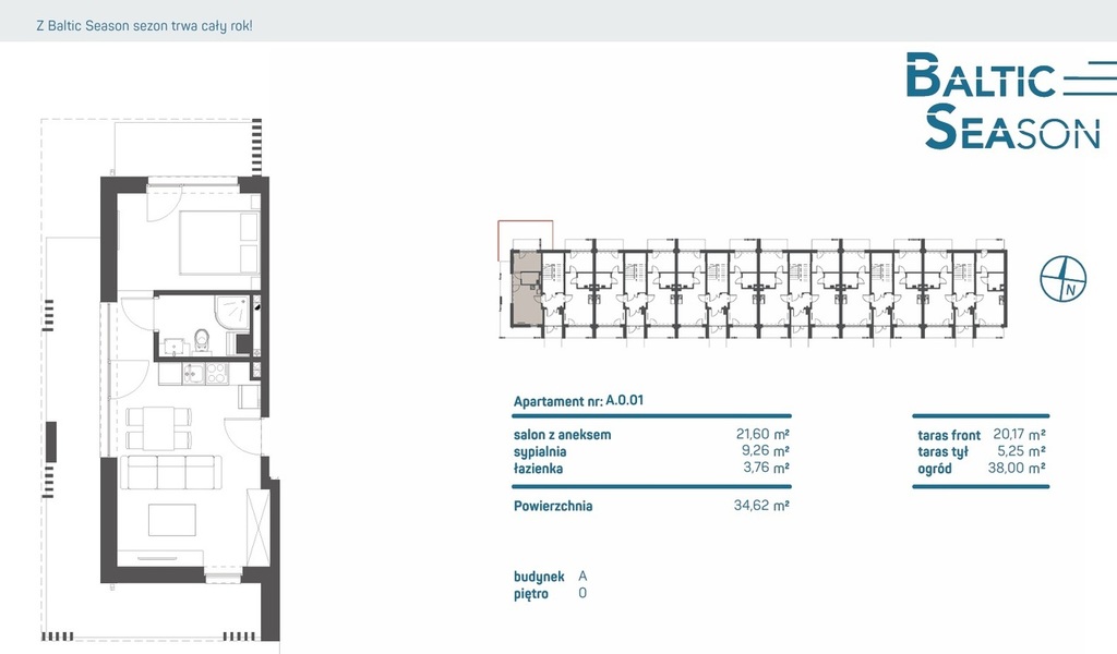 Baltic Season SPA Apartments is an extremely modern apartment development. The investment consists of two small buildings, including a total of 24 three-story terraced segments, in