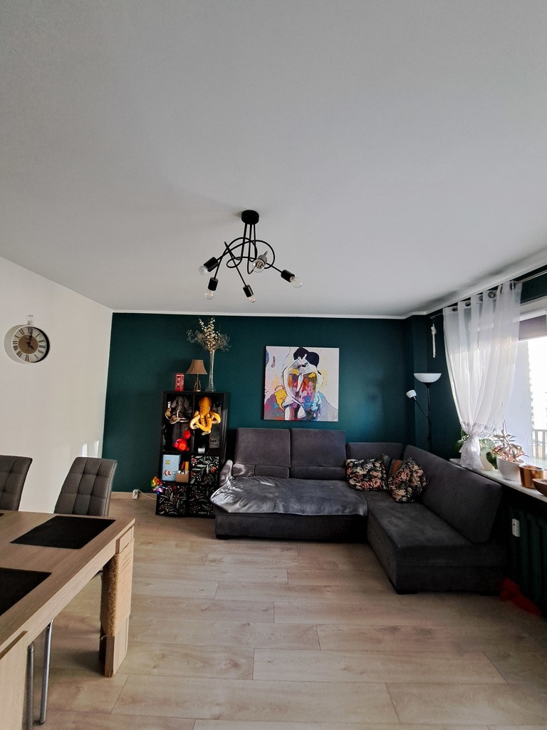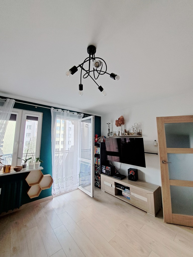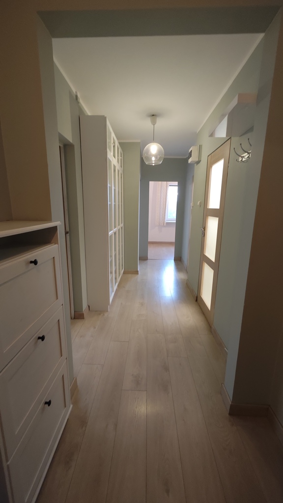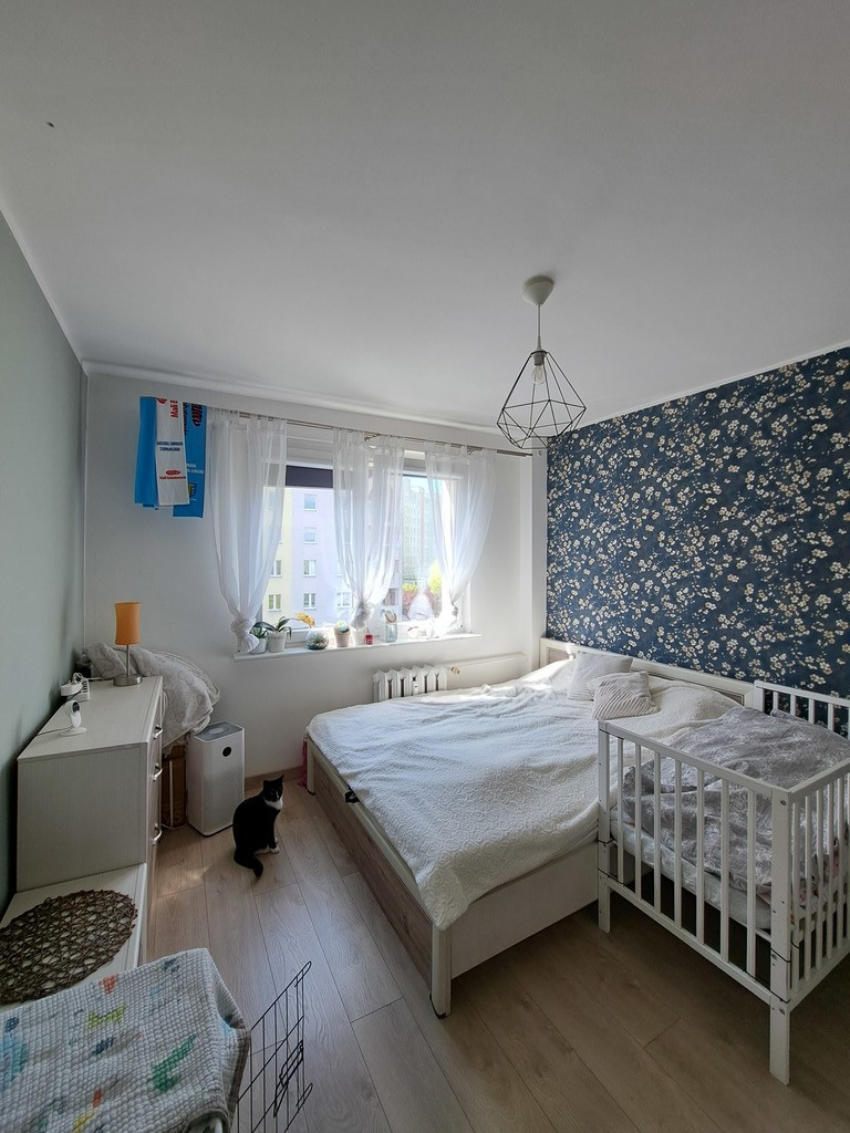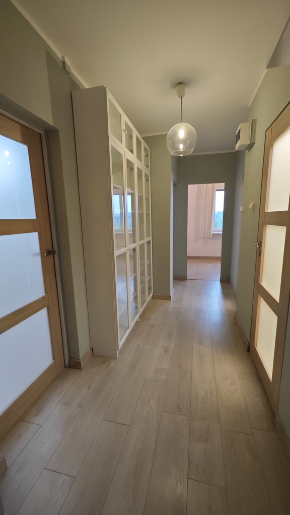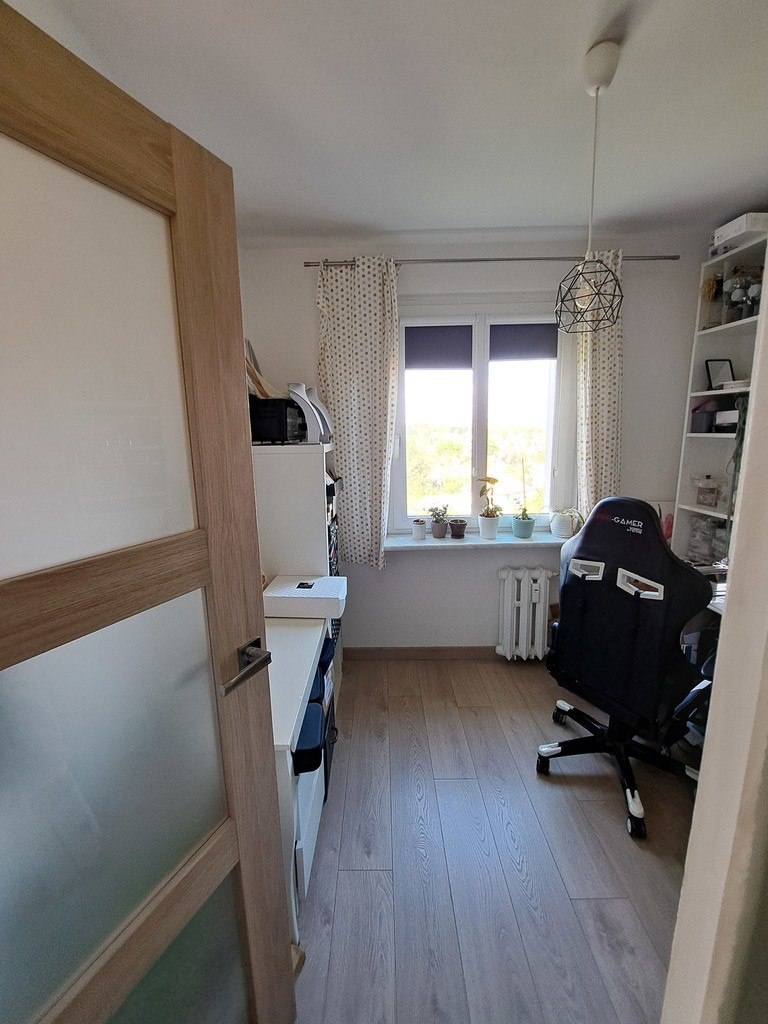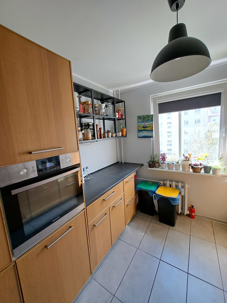 Offer for sale of a four-room apartment with an area of 72.22 m2, located on the fourth floor in an insulated skyscraper located in the Bandurskiego Housing Estate. The apartment consists of a large living room with access to a sunny, tiled balcony, three separate bedrooms, a kitchen with a window, a separate bathroom and toilet, and a hall. The apartment is offered for sale in a very good standard. The rooms have plastered and painted walls and partially decorative wallpapers. In May 2022, the apartment underwent a general refreshment in the form of a complete painting. Panels on the floor in the rooms and hall. In the kitchen there is terracotta on the floor and partly tiles on the walls. The price includes full IKEA kitchen furniture in the METOD system, ENHET shelves and household appliances – a built-in Samsung gas hob, an Amica hood, a built-in Bosch dishwasher, a built-in Samsung oven and a Samsung A+++ refrigerator. Bathroom and toilet separately. The bathroom has terracotta floors and tiles on the walls. The bathroom has a tiled bathtub with a glass shower screen, an ENHET shelf and a washbasin with a cabinet. A foldable towel rack above the bathtub. The toilet has a built-in concealed geberit, a cabinet above it and an additional washbasin. In the hall there is a large Commander type wardrobe and a double Billy bookcase with glass doors. In one of the bedrooms, there is Ikea furniture in the PAX system, made by my own design. All windows in the apartment were replaced with PVC. Water and sewage pipes (PVC) were also replaced. Heating and hot water – municipal. Rent for the cooperative is PLN 960 for three people (including renovation fund, gas, heating, cold and hot water and garbage collection). Returns on heating – approximately half of the rent per year. The apartment includes a basement (less than 4 m2). The building is insulated. Only three apartments per floor. In 2020, a modern, silent-running Schindler elevator was installed in the building. There are numerous green areas, a kindergarten and local parking lots next to the building. Żabka, Biedronka, Lidl and Stokrotka properties nearby. The estate has three playgrounds for children and a clearing for walking dogs. Very close to public transport stops (150 meters from the building, bus stop for lines 57 and 68). An offer worth recommending due to the attractive location of the property! We invite you to see the apartment!