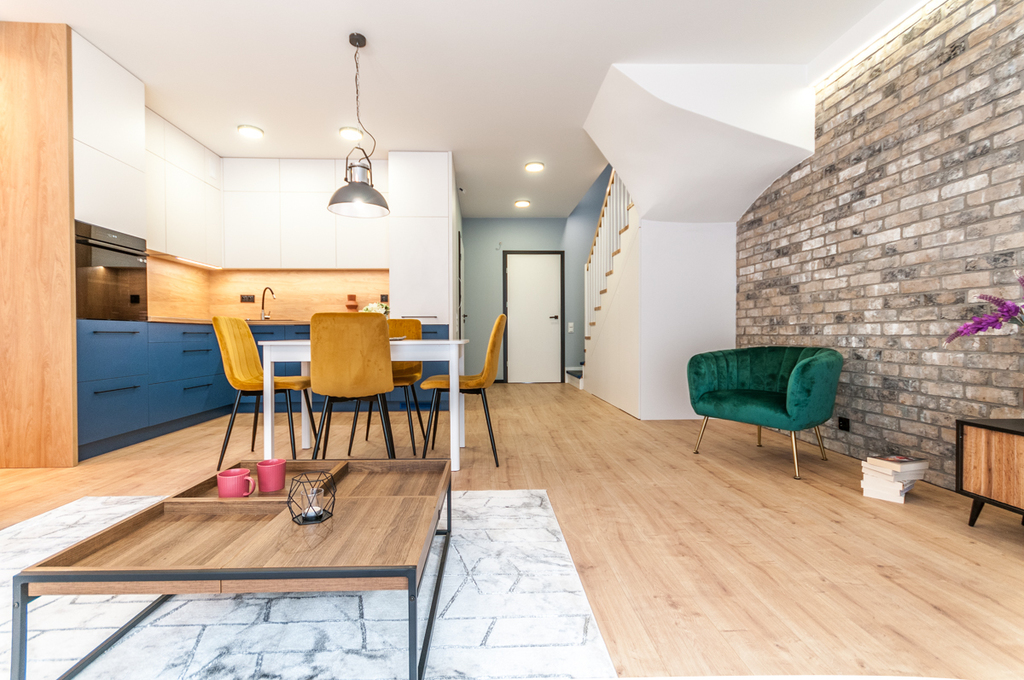 The photos show the interior of one of the segments, which is currently undergoing final finishing works. There are two turnkey premises available in this style. We also present some photos of another segment to show you the nature of the furniture, which will be available as a turnkey standard (the colors and style of the furniture may vary). We invite you to see the interiors live.